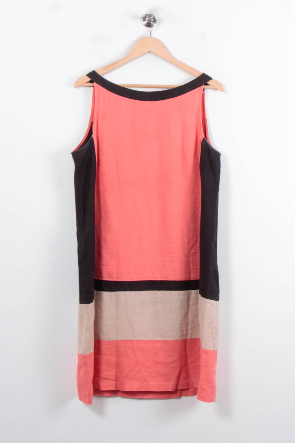 Robe sans manches multicolore Maison 123, taille XXL/44 – une pièce moderne au style color block affirmé. Confectionnée dans une matière légère au tombé fluide, cette robe présente de larges bandes de couleurs contrastées dans des tons corail, noir et beige, apportant une touche graphique et contemporaine. Idéale pour une sortie estivale ou une journée décontractée, cette robe offre confort et élégance en toute simplicité.