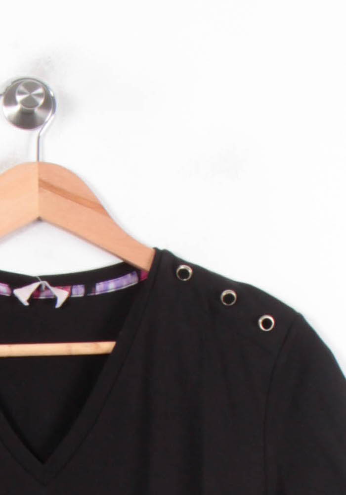 Robe noire Liu Jo taille L/40 à manches courtes, avec haut uni et jupe à imprimé floral rose et violet. La partie supérieure est confectionnée dans une matière douce, ornée de boutons métalliques sur l’épaule, tandis que la jupe fluide présente un imprimé fleuri vibrant et des volants délicats pour une touche d’originalité. Idéale pour une sortie estivale, un brunch entre amis ou une occasion décontractée nécessitant une allure féminine et élégante.