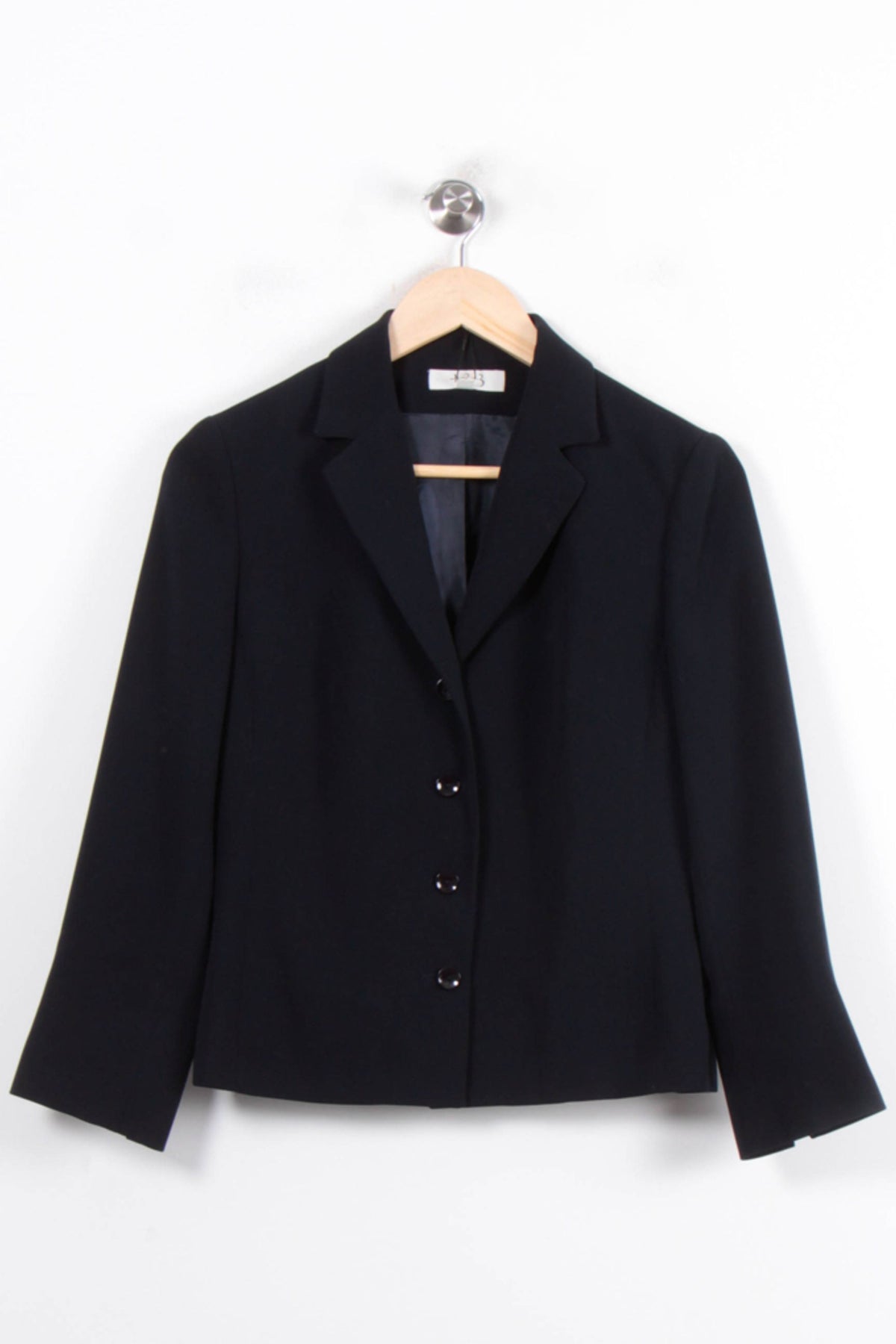 Veste noire classique Maison 123, taille M/38, idéale pour une silhouette élégante et intemporelle. Confectionnée dans une matière douce au fini mat, elle se distingue par ses lignes épurées, son col à revers soigné et sa fermeture par quatre boutons recouverts assortis, offrant une allure raffinée et sobre. Parfaite pour une réunion professionnelle ou une soirée habillée, elle apporte une touche sophistiquée à toute tenue.