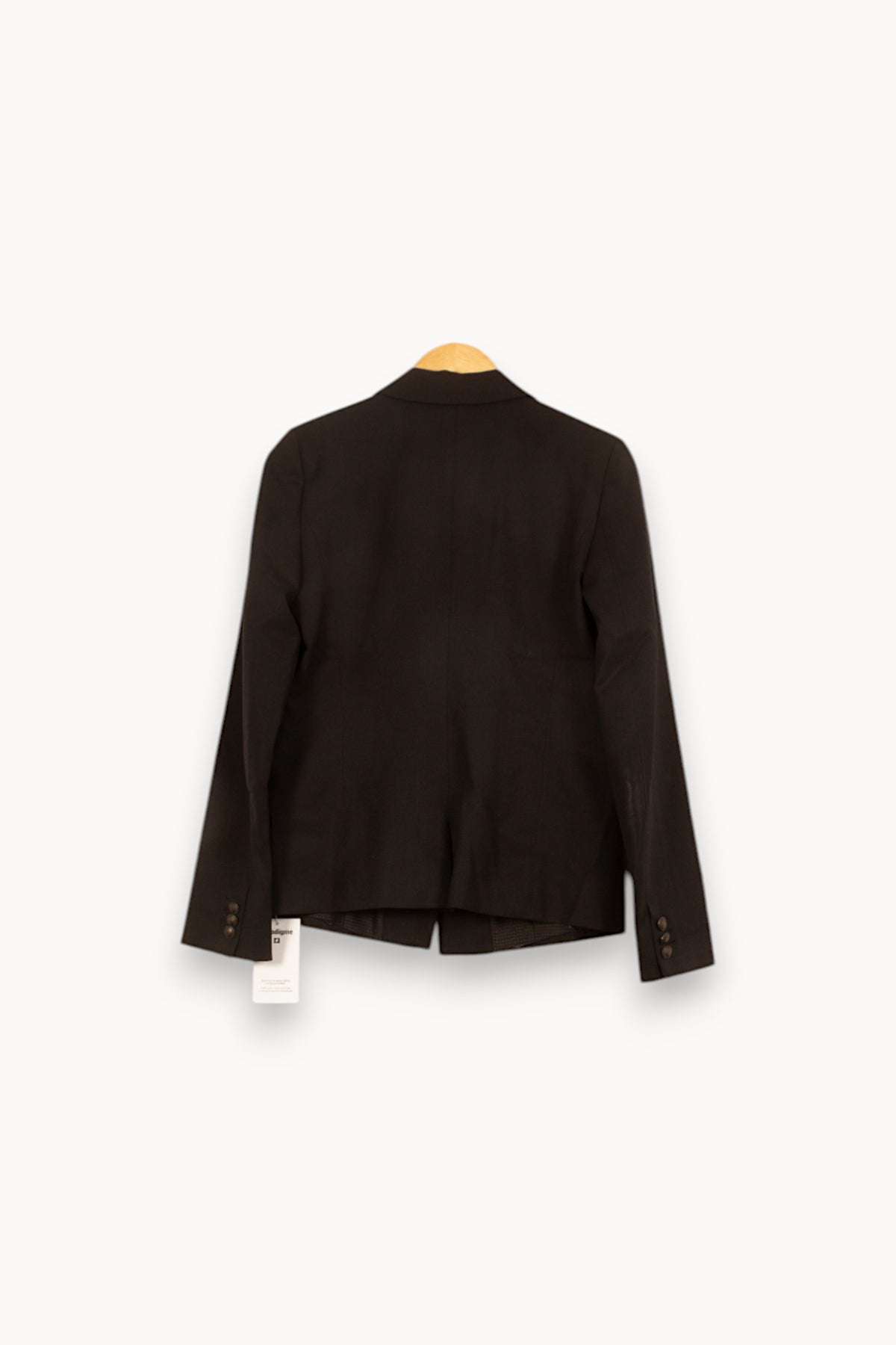 Veste noire élégante IKKS en taille M/38, idéale pour un vestiaire moderne et raffiné. Confectionnée dans une matière structurée, cette veste se distingue par son col légèrement satiné et ses finitions soignées, qui lui apportent une touche sophistiquée unique. Parfaite pour une réunion professionnelle ou un événement habillé, elle saura compléter votre tenue avec style.