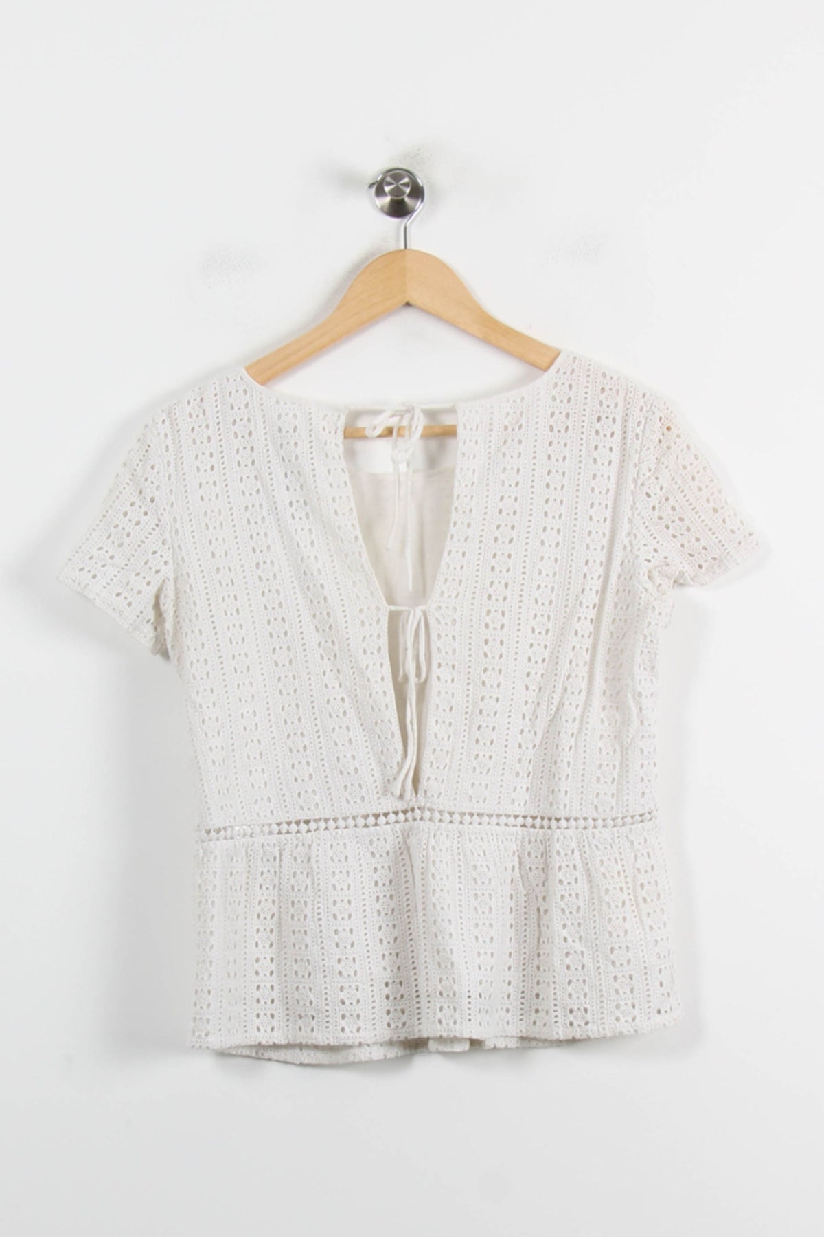 Top brodé ajouré blanc Sézane, taille M/38, raffiné et féminin, parfait pour sublimer votre garde-robe estivale. Réalisé dans une matière ajourée délicate, ce top se distingue par ses motifs brodés et sa structure travaillée, qui lui confèrent une allure élégante et intemporelle. Idéal pour un déjeuner en terrasse ou un évènement estival, il s’accorde aisément à une tenue chic et décontractée.