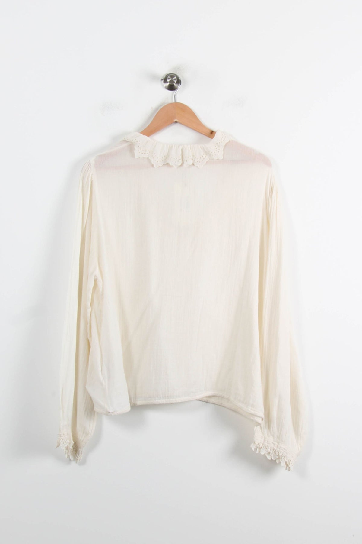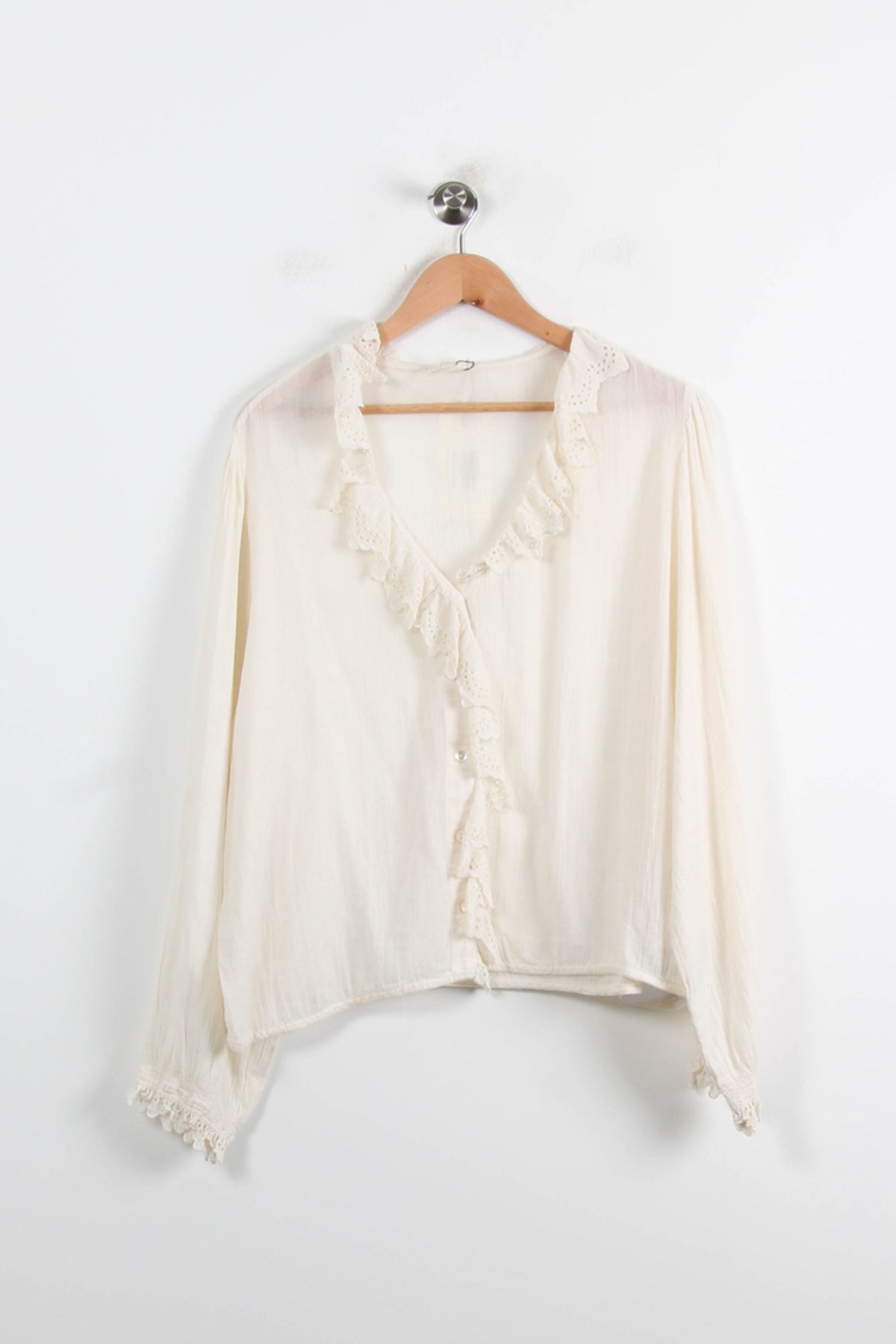Blouse blanche Louise Misha, taille XL/42, au design romantique rehaussé de volants délicats sur l’encolure et les poignets. Confectionnée dans une matière légère et fluide, ce top se distingue par ses finitions en broderie anglaise et sa coupe vaporeuse, offrant une allure élégante et féminine. Idéale pour une réunion entre amis ou une sortie estivale, cette blouse apporte une touche raffinée à toutes vos tenues.