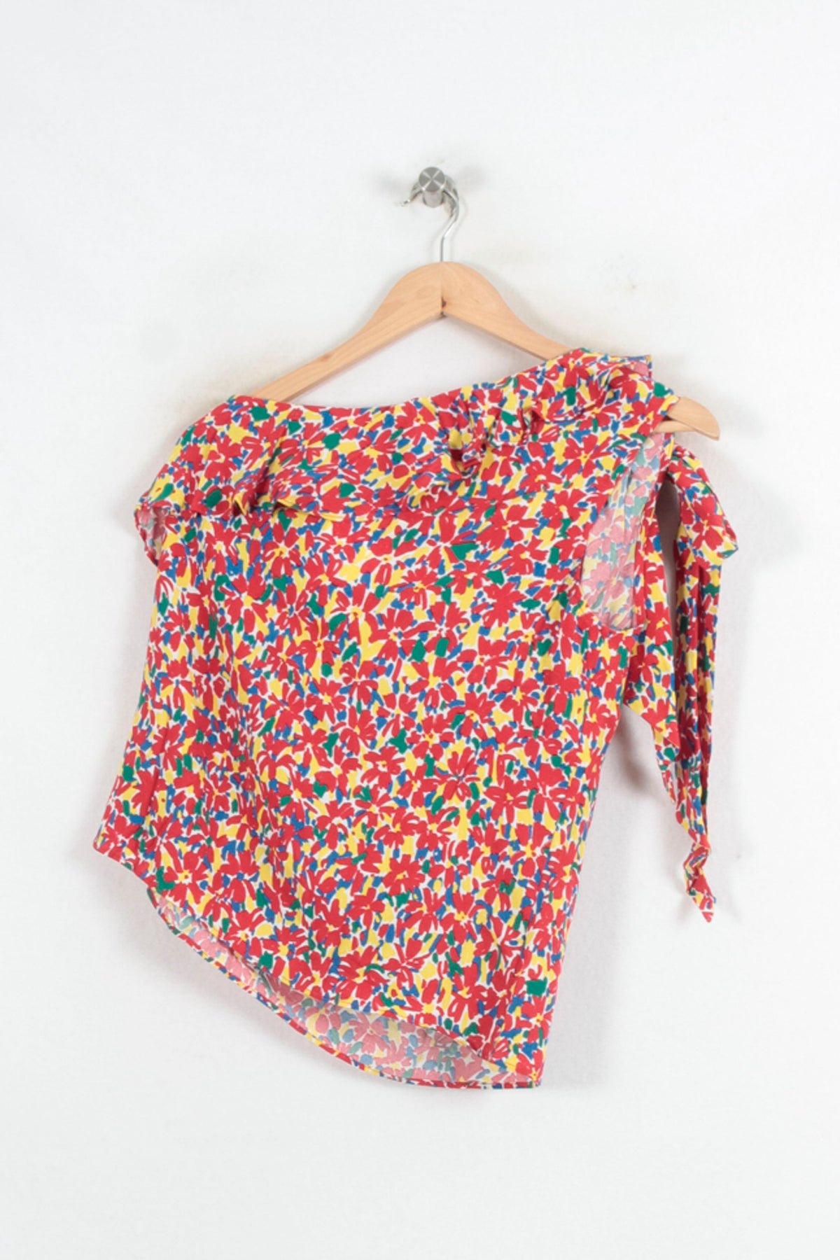 Top multicolore Claudie Pierlot, taille L/40, à l'imprimé fleuri dynamique, parfait pour une allure joyeuse et raffinée. Confectionné dans une matière fluide, il se distingue par son encolure drapée et son élégant nœud à l'épaule, apportant une touche de féminité et d’originalité. Ce top sera idéal pour une sortie estivale ou un déjeuner en terrasse, associé à un pantalon clair ou une jupe fluide.