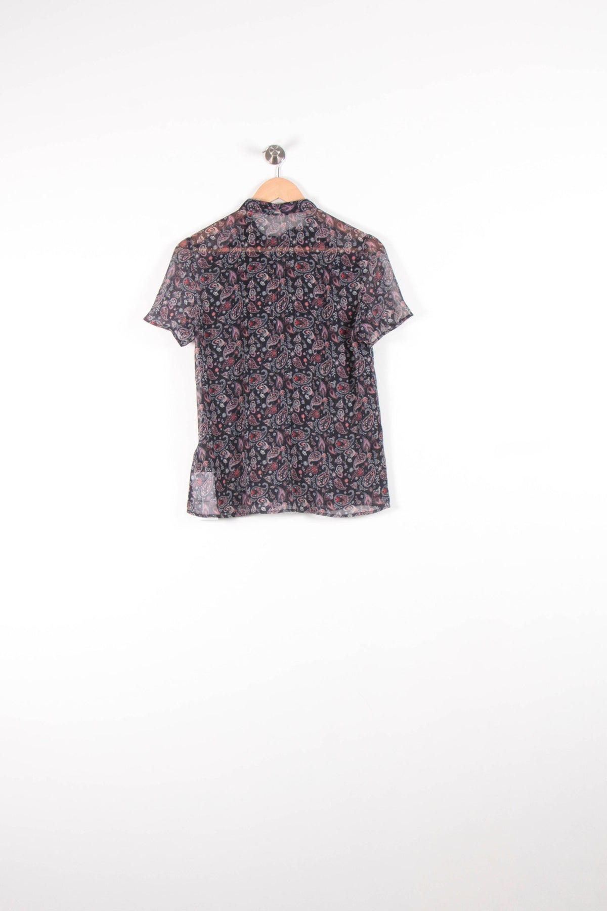 Top multicolore IKKS taille M/38, présentant une coupe fluide et des manches courtes, idéal pour un look chic et décontracté. Confectionné dans une matière légère et transparente, ce haut séduit par son imprimé fleuri au ton subtil et sa finition raffinée au col. Parfait pour une journée au bureau ou un déjeuner en ville, associé à un pantalon élégant ou une jupe.