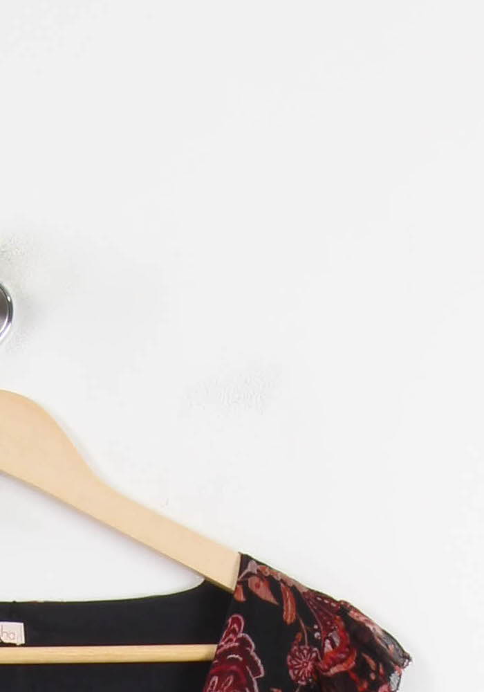 Top Louise Misha noir à imprimé floral, taille M/38, marque Louise Misha. Confectionné dans une matière fluide et légère, ce haut se distingue par ses motifs floraux rouges et bruns, ses manches longues bouffantes et son encolure en V qui apportent une touche de raffinement et d’originalité. Parfait pour une sortie entre amis ou un dîner élégant, associé à un pantalon taille haute ou une jupe midi.