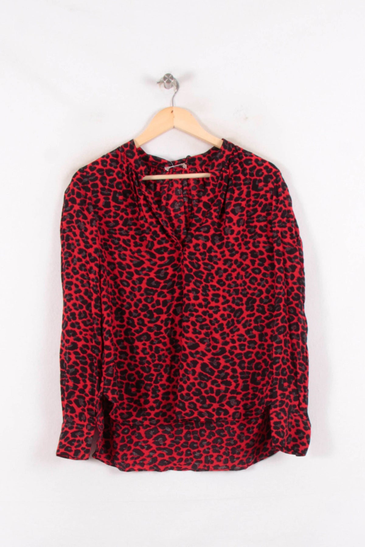 Top Zadig&Voltaire rouge imprimé léopard, taille S/36, féminin et audacieux. Confectionné dans une matière fluide à motif léopard, ce haut séduit par ses lignes modernes et son encolure subtilement ouverte qui lui confère une touche de caractère unique. Idéal pour dynamiser une tenue de bureau ou pour une soirée entre amis, il apporte une note sophistiquée à votre look.