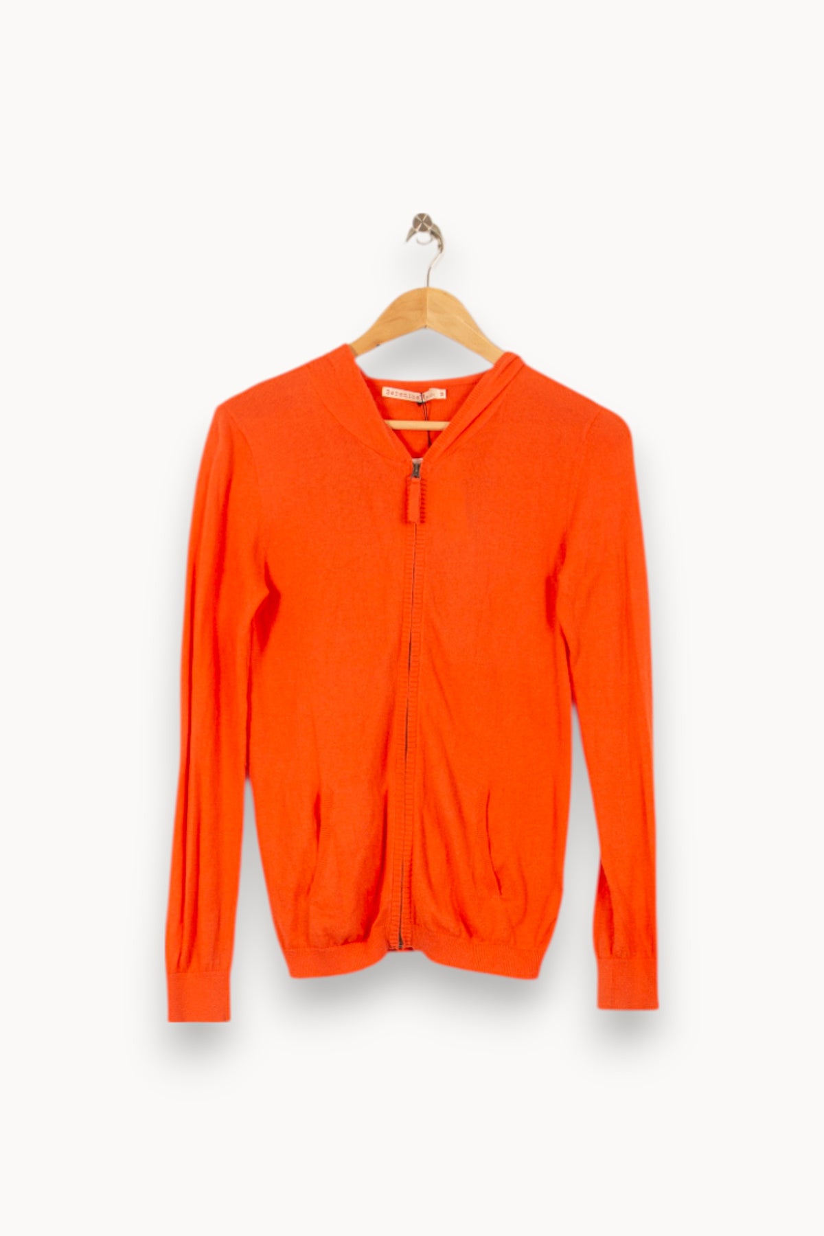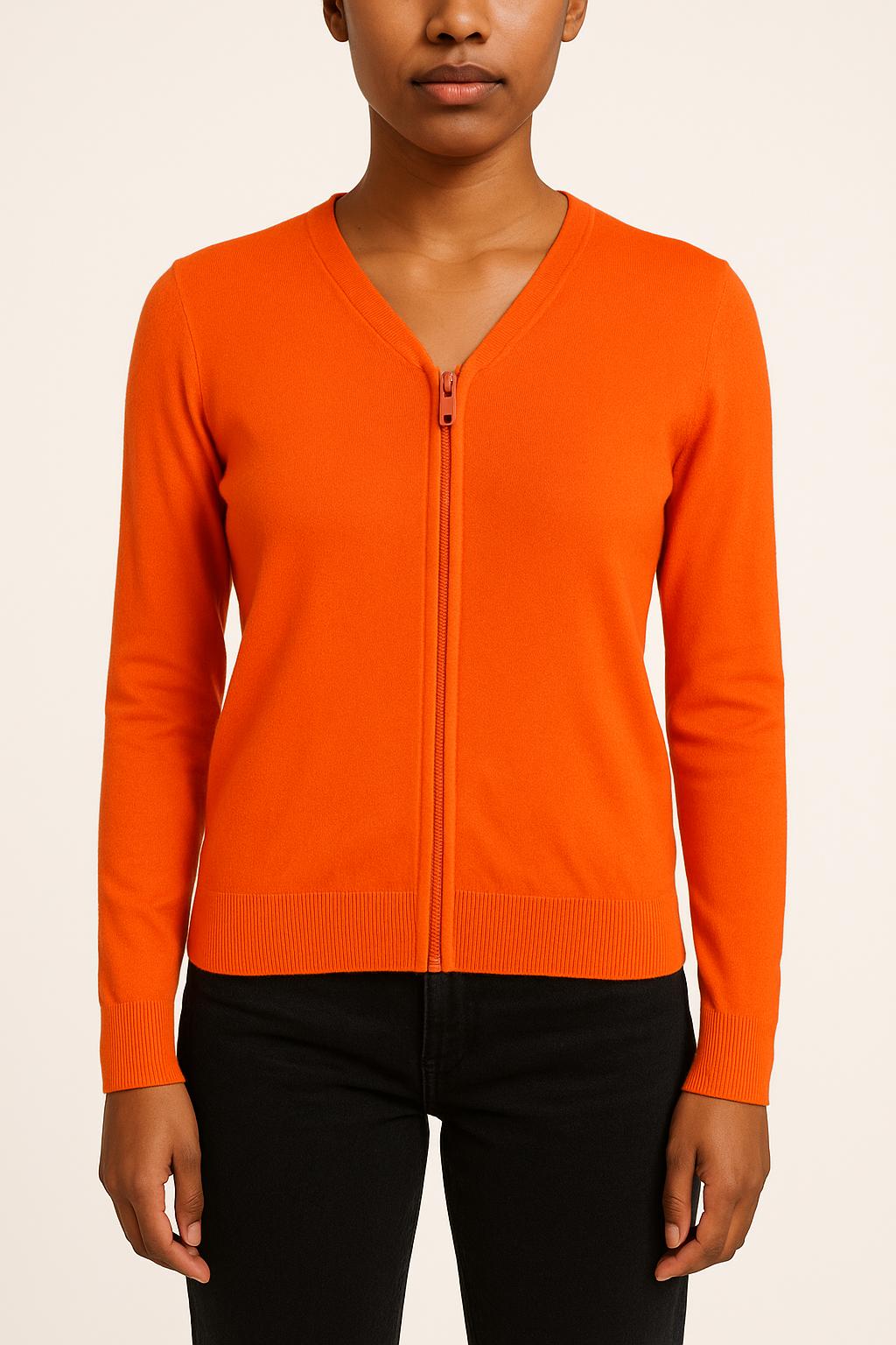 Cardigan zippé orange Bérénice, taille XS/34, apportant une touche lumineuse à votre garde-robe. Confectionné dans une maille légère à la texture douce, il se distingue par sa fermeture zippée centrale et ses finitions côtelées, soulignant un design sobre et moderne. À porter lors d’une journée décontractée ou pour égayer une tenue professionnelle avec élégance.