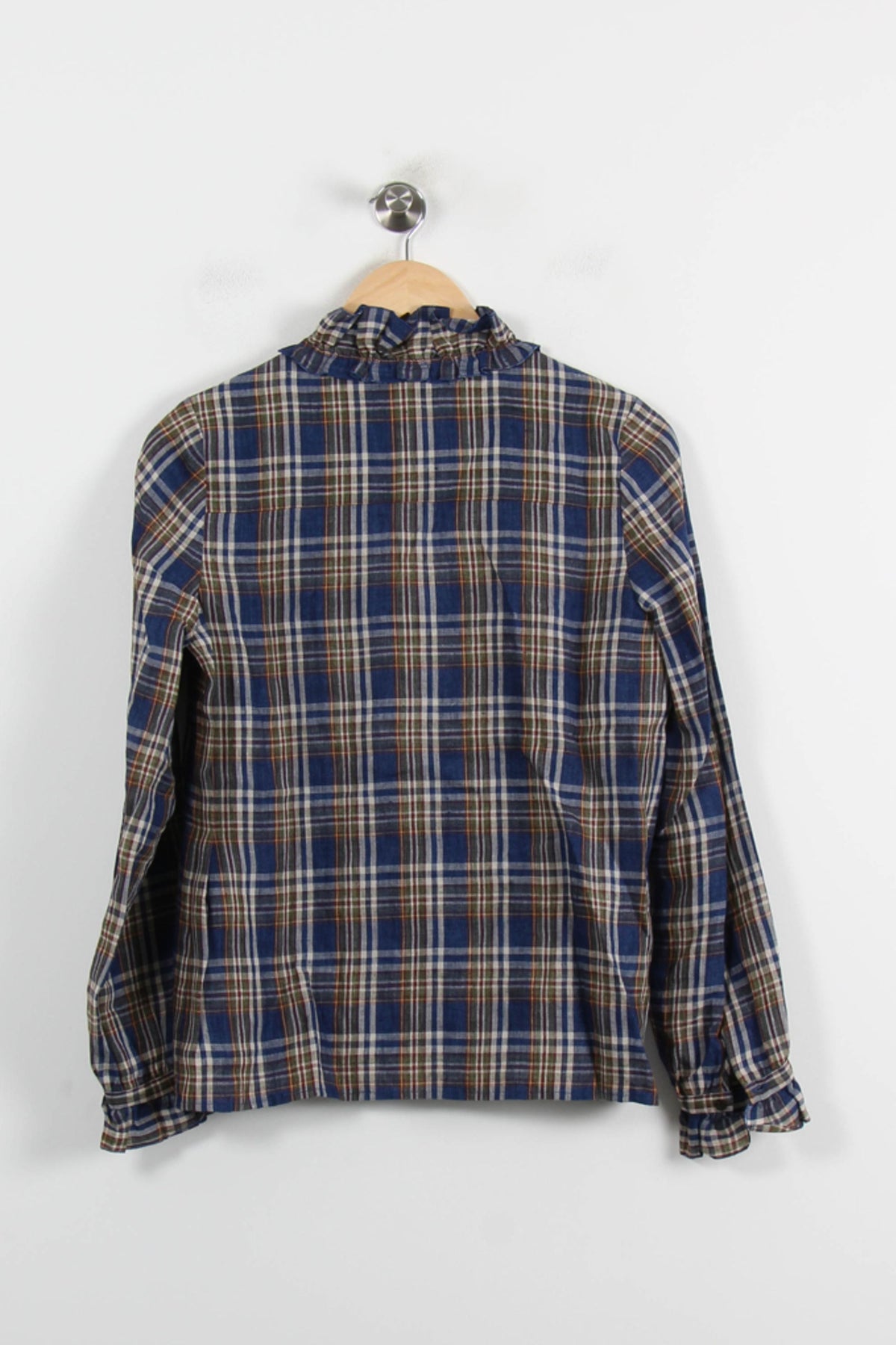 Blouse à carreaux multicolore Sézane, taille XS/34, de la catégorie Tops. Confectionnée dans une matière à l’aspect doux et souple, cette blouse se distingue par ses volants délicats le long du col en V et des poignets, ainsi que son motif à carreaux sophistiqué pour une touche élégante et contemporaine. Idéale pour une journée au bureau ou un déjeuner entre amis, elle apporte raffinement et confort à toutes vos tenues.