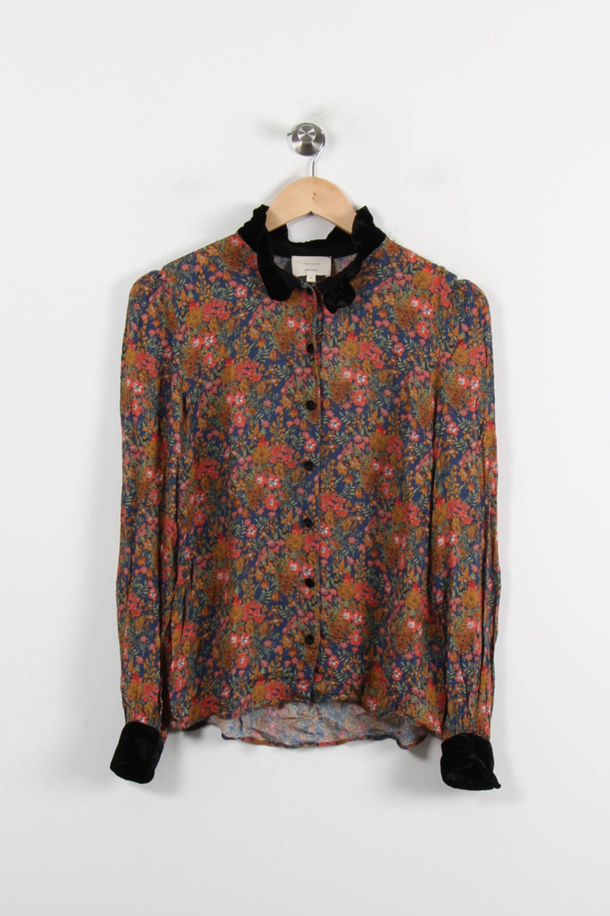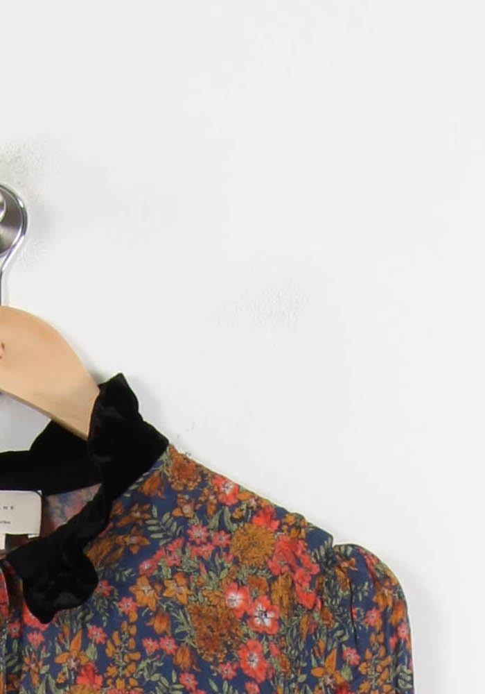 Blouse fleurie Sézane en taille S/36, aux tons multicolores et détails raffinés, idéale pour sublimer votre garde-robe. Confectionnée dans une matière fluide, ornée d’un col et de poignets en velours noir contrastant, elle se distingue par son imprimé floral élégant et ses boutons délicats, apportant une touche unique et sophistiquée. Ce top sera parfait pour une journée au bureau ou une sortie décontractée en ville, offrant une allure féminine et chic en toute simplicité.