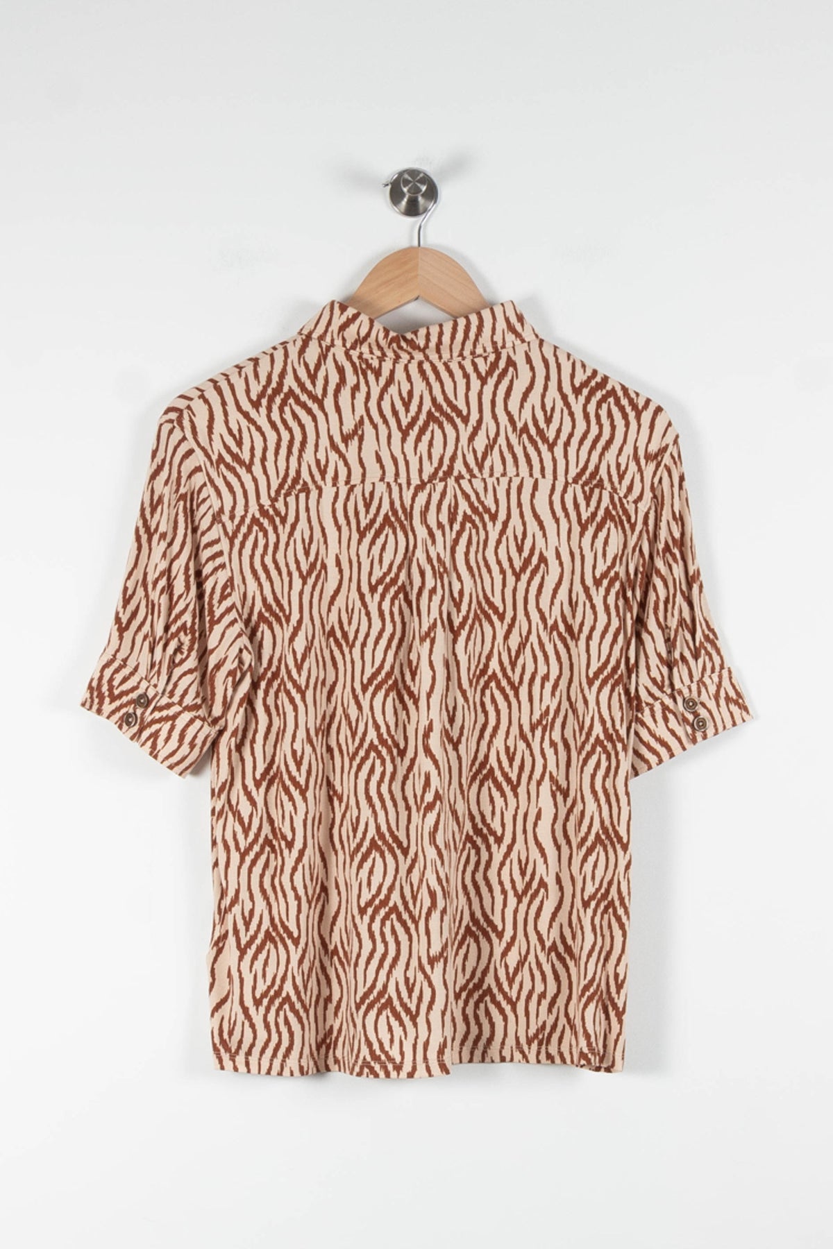 Chemise Manche Courte Beige et Marron - Taille M/38