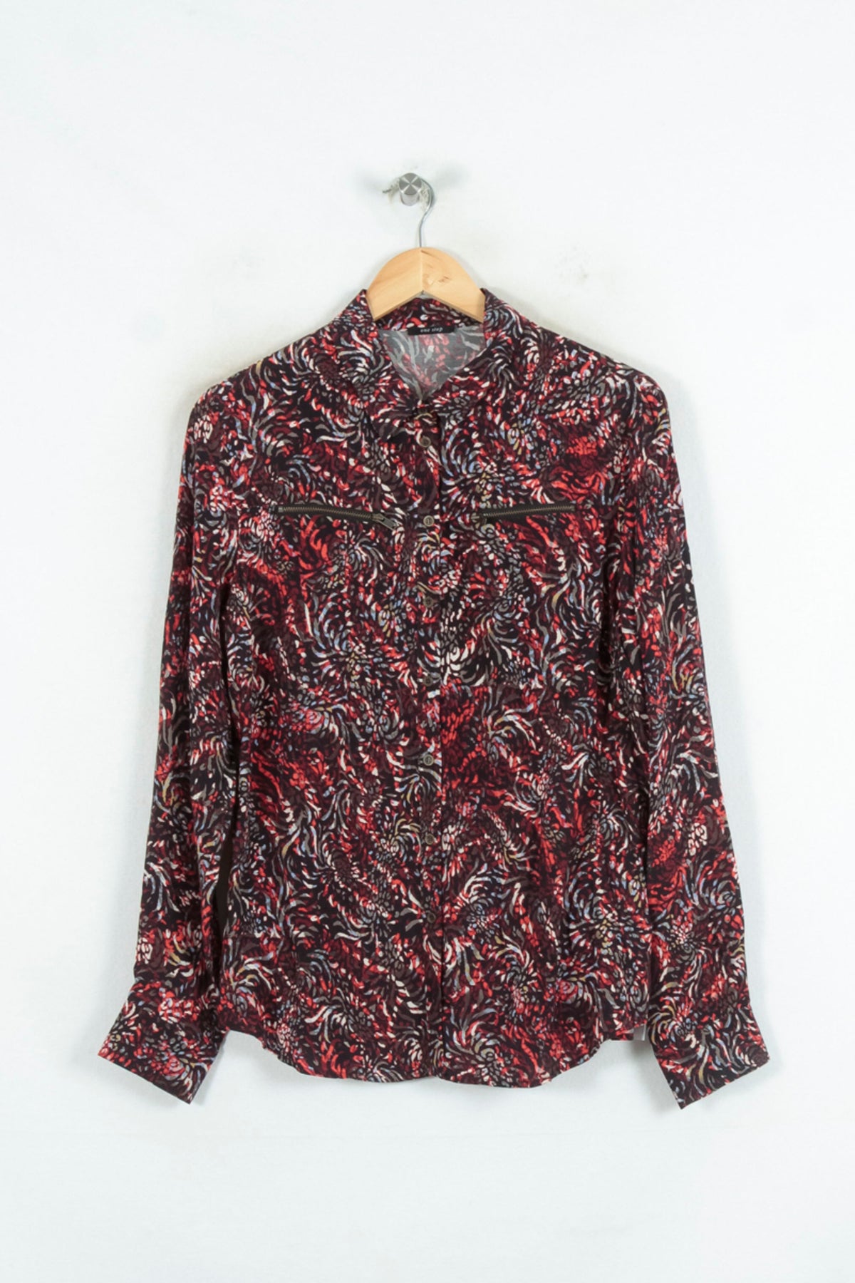 Chemise multicolore à manches longues One Step, taille XL/42, parfaite pour sublimer votre garde-robe avec une pièce unique à motif vibrant. Cette pièce fluide séduit par son imprimé dynamique associant des teintes rouges, noires et blanches, ainsi que sa coupe élégante structurée par une boutonnière discrète et des détails subtils au niveau de la poitrine. Idéale pour une journée de travail où confort et style sont essentiels, cette chemise se porte facilement lors d’un déjeuner professionnel ou d’une sortie citadine.
