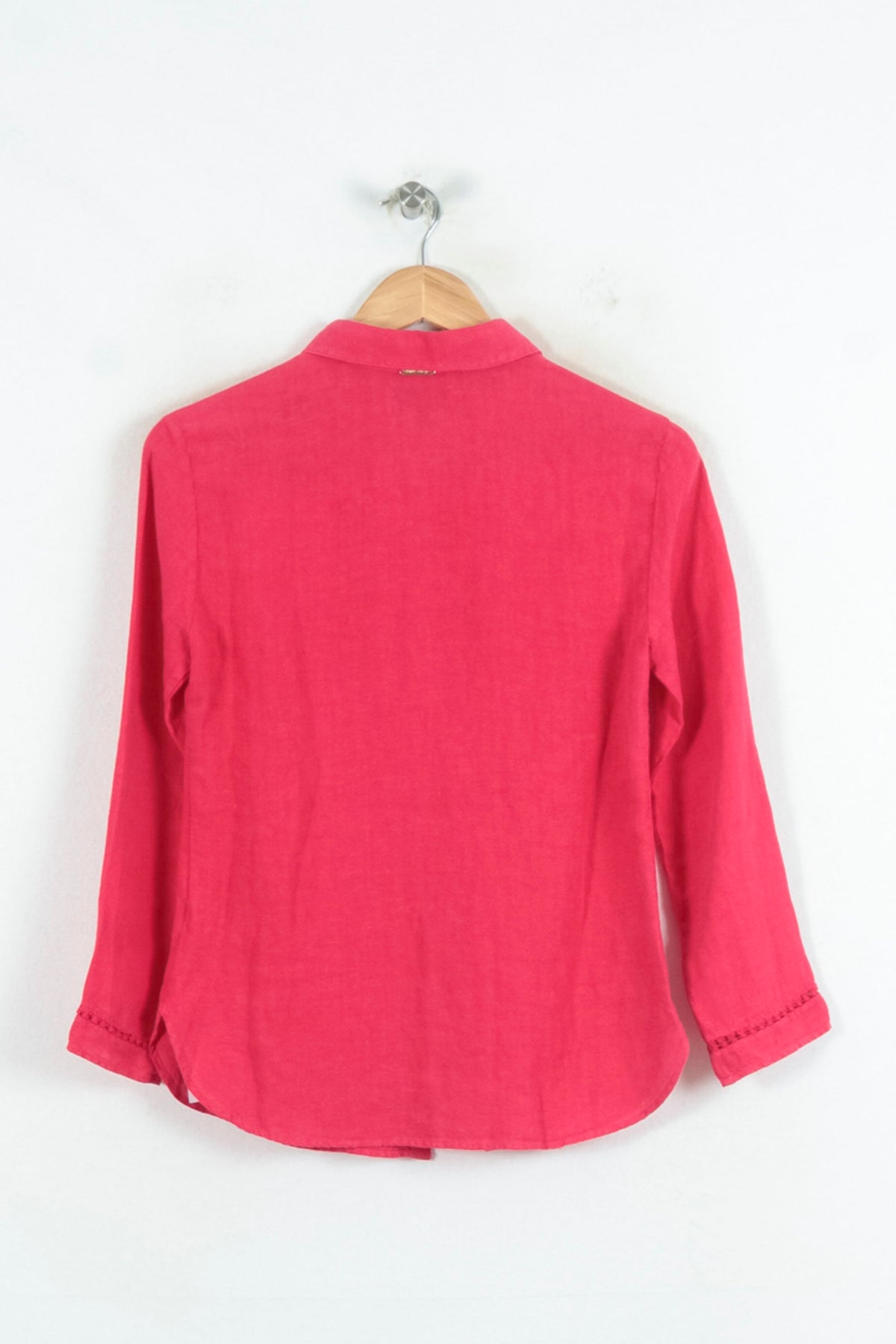 Top chemise One Step rouge taille XS/34, un modèle élégant et intemporel idéal pour sublimer votre garde-robe. Confectionné dans une matière légère et agréable, ce top se distingue par ses détails ajourés discrets sur les épaules et les poignets, ainsi que sa boutonnière raffinée, qui lui confèrent une touche d’originalité et de chic. Parfait pour une journée au bureau ou un déjeuner entre amies pour allier confort et sophistication.