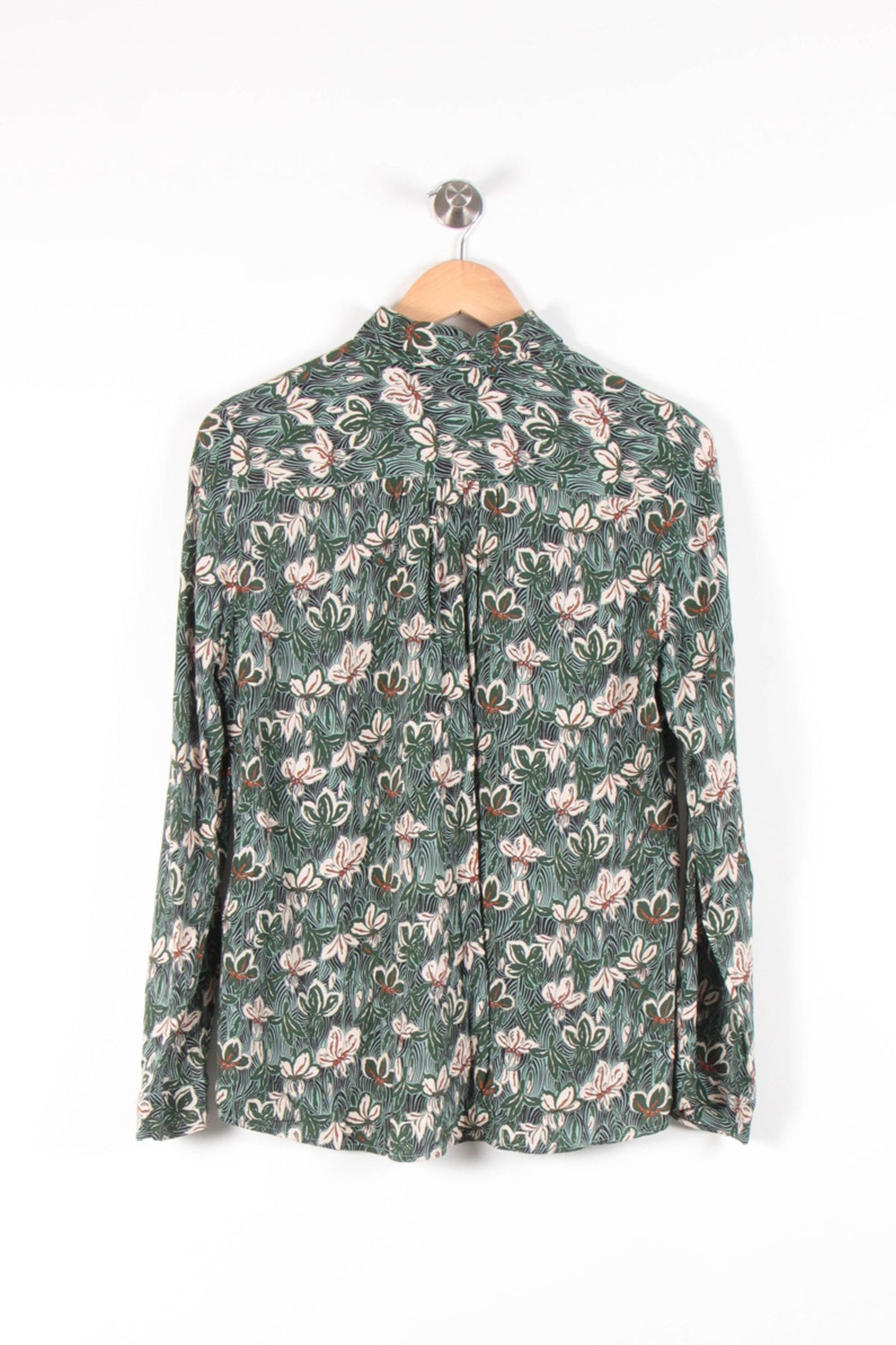 Blouse fleurie verte Caroll - Taille M/38, élégante et raffinée, idéale pour sublimer votre look printanier. Confectionnée dans une matière légère, cette blouse se distingue par son imprimé floral délicat et ses boutons discrets, offrant une touche de fraîcheur et d'originalité à votre tenue. Parfaite pour une journée de travail élégante ou un déjeuner en terrasse entre amis.