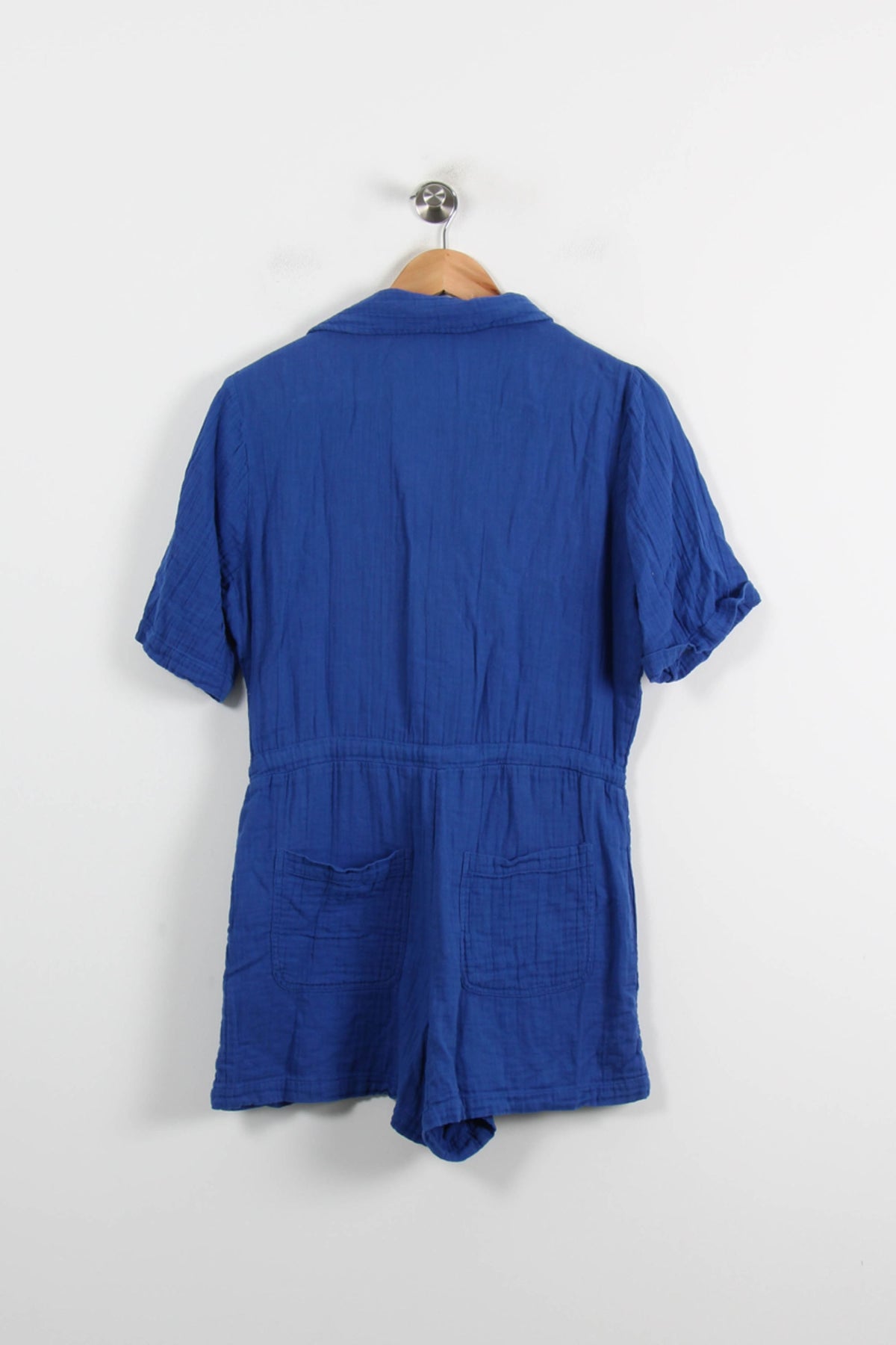 Combinaison bleu Petite Mendigote taille M/38, à manches courtes avec col chemise et lien à la taille. Confectionnée dans une matière légère à l’aspect gaufré, cette pièce se distingue par ses poches plaquées à la poitrine et aux hanches, qui lui apportent une touche casual et pratique. Idéale pour une journée estivale en ville ou un week-end détente, elle allie confort et style décontracté.
