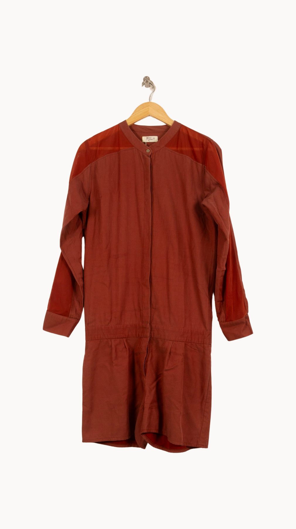 Combinaison bordeaux Karma Koma, taille L/40 : une pièce élégante aux lignes sobres idéale pour une allure moderne et décontractée. Confectionnée dans une matière souple et légère, elle est dotée de détails transparents au niveau des épaules, qui lui confèrent une touche d’originalité raffinée. Parfaite pour une journée urbaine ou un dîner entre amis où élégance et confort sont de mise.
