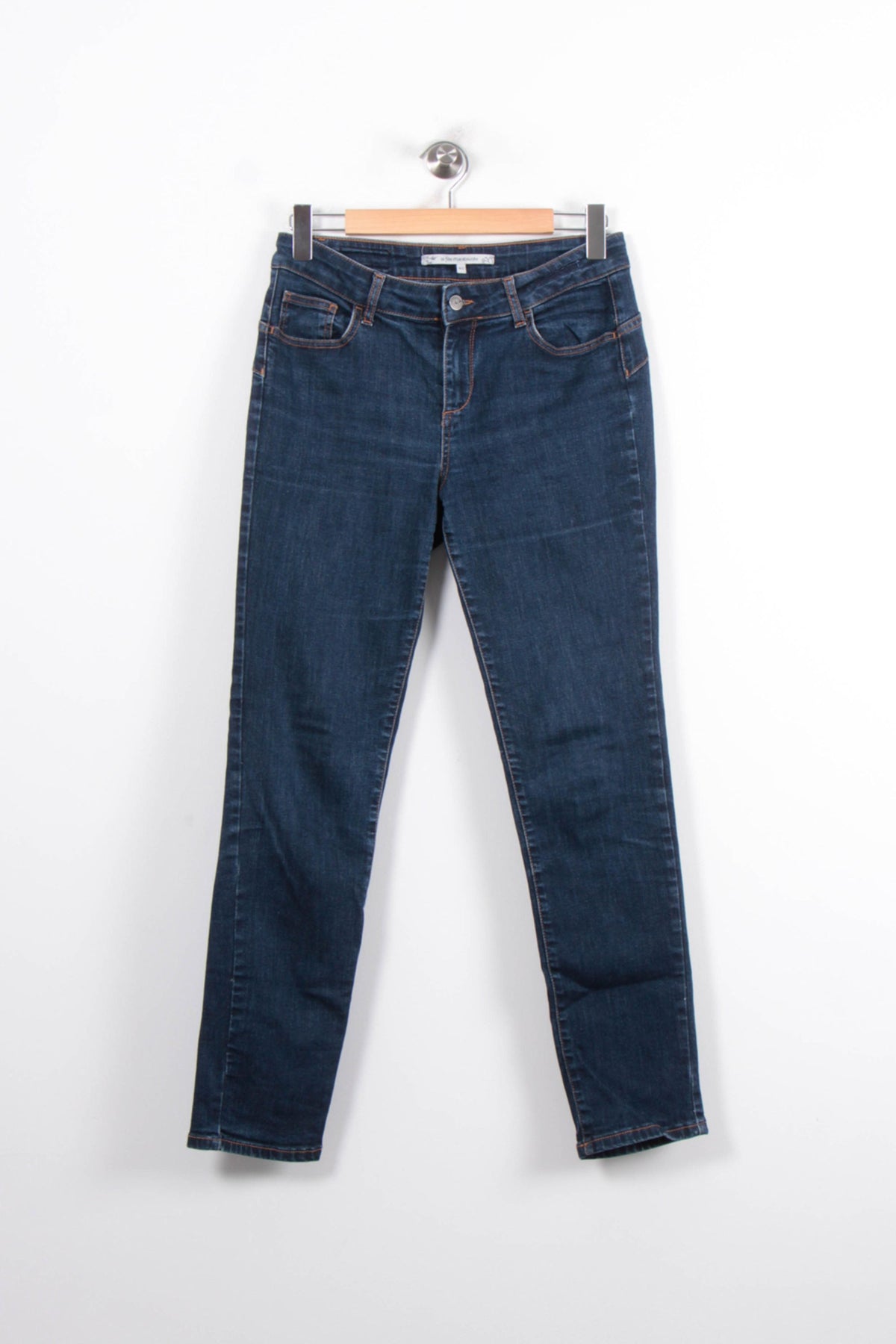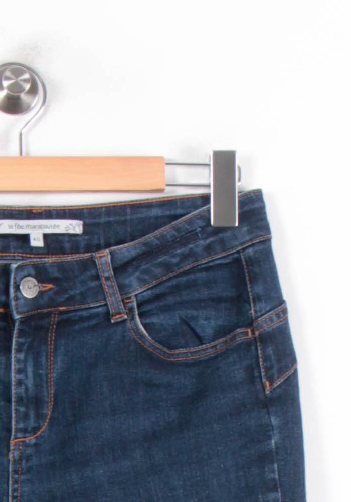 Jean bleu classique La Fée Maraboutée, taille L/40, idéal pour une allure décontractée et élégante en toute simplicité. Confectionné dans une toile denim douce et résistante, ce pantalon se distingue par ses surpiqûres contrastées et ses finitions soignées qui lui apportent une touche de modernité. Parfait à porter pour une journée de travail décontractée ou une sortie citadine.