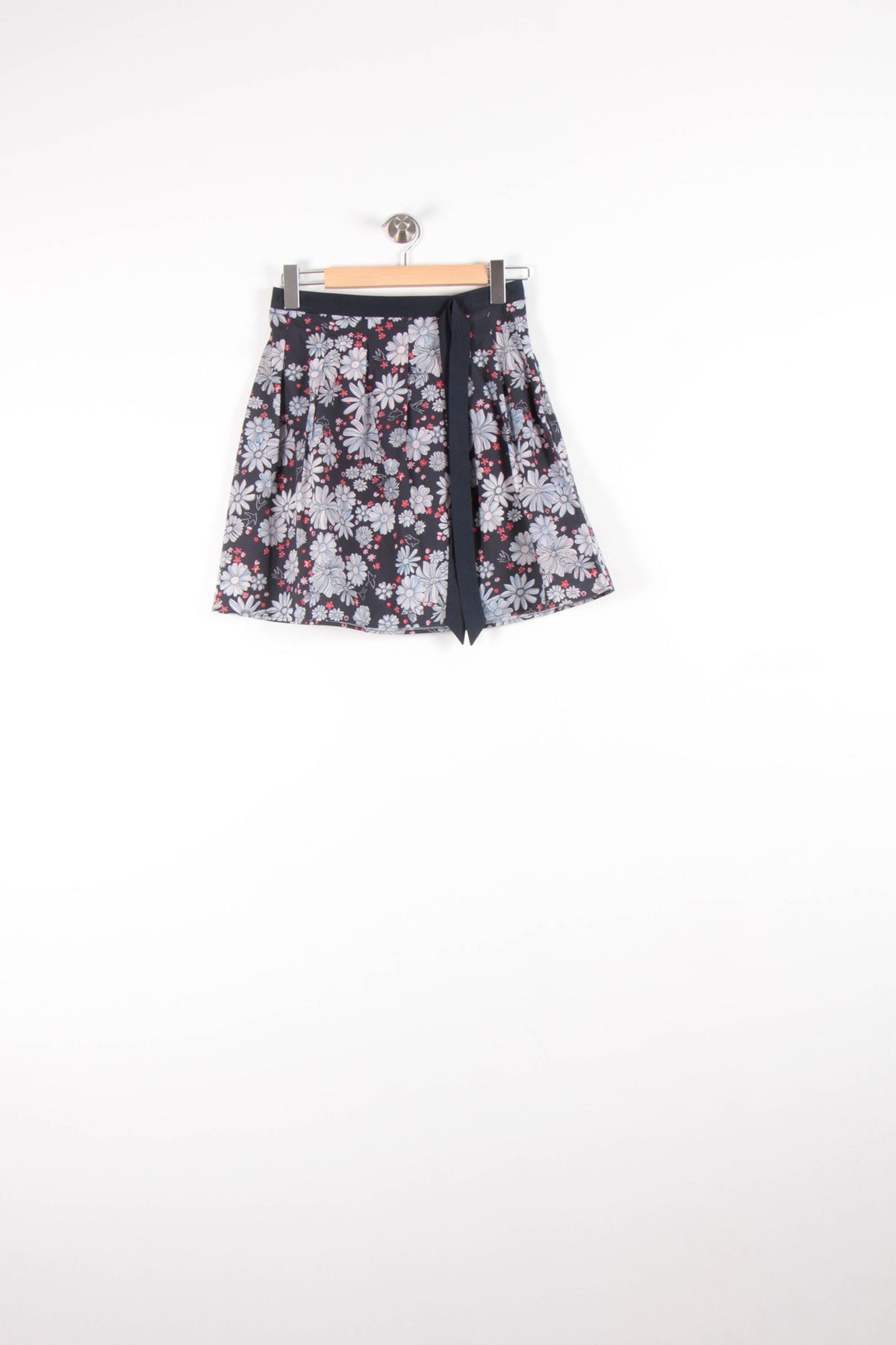 Jupe Claudie Pierlot multicolore à motif fleuri, taille S/36. Réalisée dans une matière légère, cette jupe se distingue par son imprimé floral raffiné agrémenté d’un ruban uni à la taille, apportant une touche élégante et féminine. Idéale pour une journée estivale ou un déjeuner chic en ville.