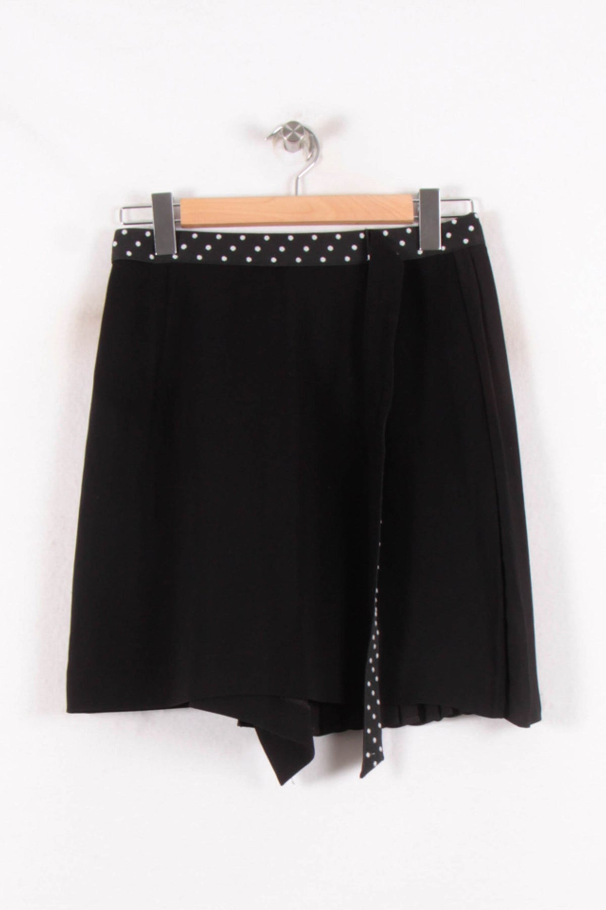 Jupe plissée noire Claudie Pierlot, taille M/38, élégante et moderne. Ce modèle se distingue par sa ceinture à pois blancs et boucle argentée, ainsi que sa coupe asymétrique et ses plis délicats, qui ajoutent une touche raffinée et originale à l’ensemble. Idéale pour un rendez-vous professionnel ou une sortie élégante en soirée.