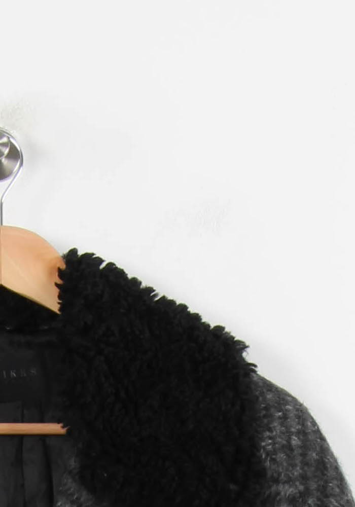 Manteau noir IKKS taille M/38, élégant et moderne, idéal pour sublimer toutes vos tenues hivernales. Confectionné dans une matière à effet chiné avec un large col en fausse fourrure, ce manteau se distingue par ses détails raffinés et son allure intemporelle. Parfait pour vos déplacements professionnels en ville ou une soirée élégante.