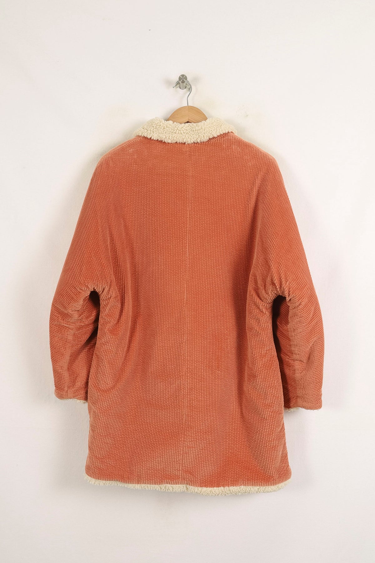 Manteau en velours côtelé orange Louise Misha, taille S/36. Ce manteau se distingue par sa matière en velours côtelé et sa doublure effet laine de mouton, qui apporte chaleur et douceur, ainsi que des boutons apparents pour une touche authentique. Idéal à porter lors d’une promenade hivernale en ville ou pour réchauffer une tenue décontractée lors d’une sortie entre amis.