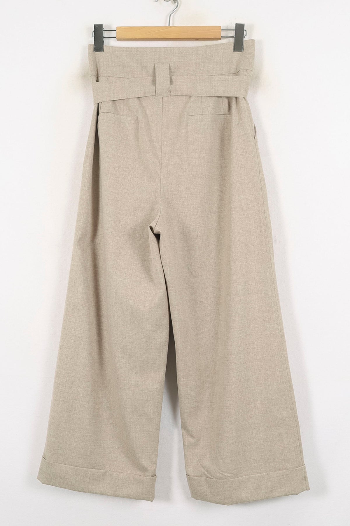 Pantalon large beige taille L/40, La Fée Maraboutée : ce pantalon élégant séduit par sa teinte neutre et sa coupe ample, confortable et tendance. Sa matière à l'aspect doux et naturel est rehaussée d’une ceinture à nouer façon paperbag et de plis marqués à la taille, apportant une touche raffinée et contemporaine. Idéal pour un rendez-vous professionnel ou une sortie citadine où confort et style sont de mise.