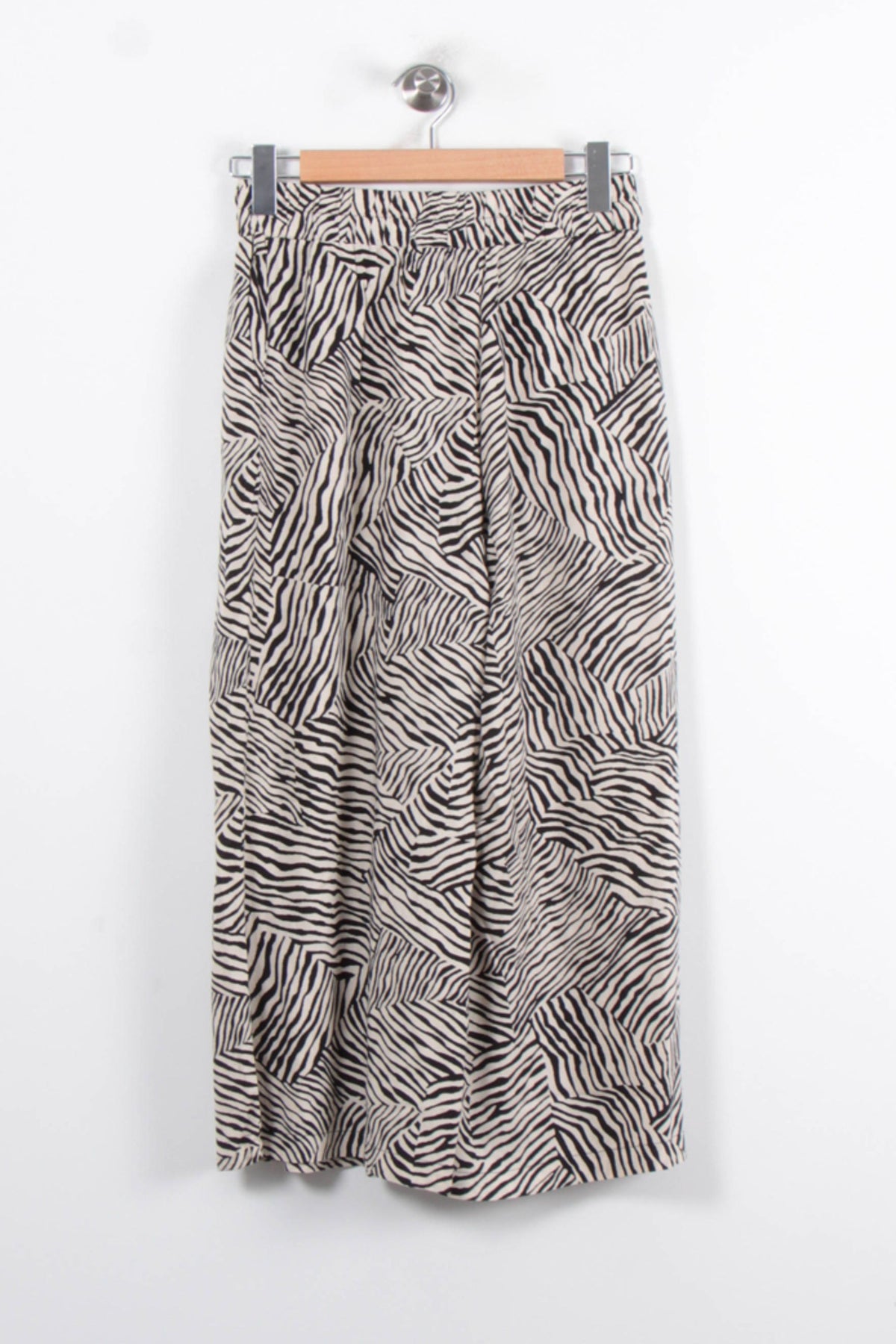 Pantalon large multicolore à motif zébré, taille S/36, de la marque Caroll. Ce pantalon se distingue par son tissu fluide et léger ainsi que par son imprimé graphique unique, apportant une touche moderne et sophistiquée à la silhouette. Idéal pour une journée au bureau ou une sortie citadine élégante.