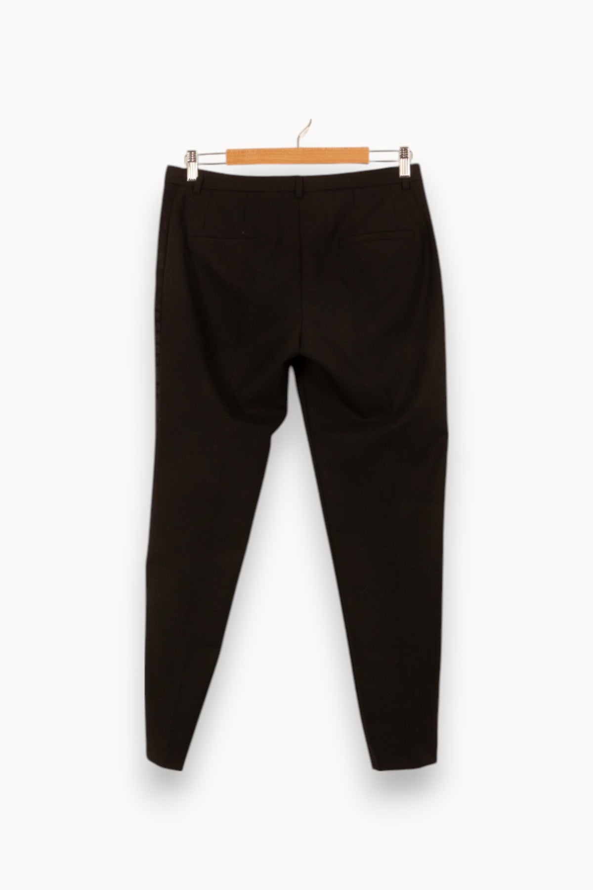 Pantalon noir élégant Gerard Darel, taille L/40, alliant sobriété et raffinement pour une silhouette moderne. Sa coupe ajustée, ses passants pour ceinture et sa bande ton sur ton subtile sur les côtés confèrent à ce pantalon un style chic tout en restant intemporel. Parfait pour une journée au bureau ou une soirée habillée, ce pantalon s’accorde facilement avec une blouse ou un blazer.