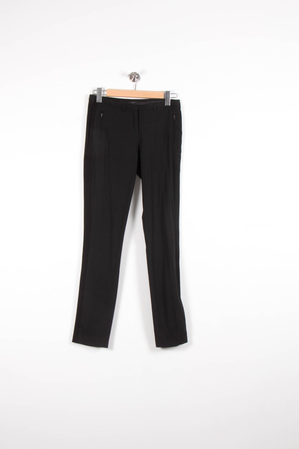 Pantalon noir droit IKKS taille M/38, marque IKKS, parfait pour une silhouette élégante et intemporelle. Sa matière fluide et ses finitions sobres, comme les deux poches zippées à l’avant, apportent une note moderne et raffinée à cet essentiel du vestiaire féminin. Idéal pour une journée au bureau ou une soirée professionnelle, il s’accorde facilement avec une chemise ou un pull ajusté.