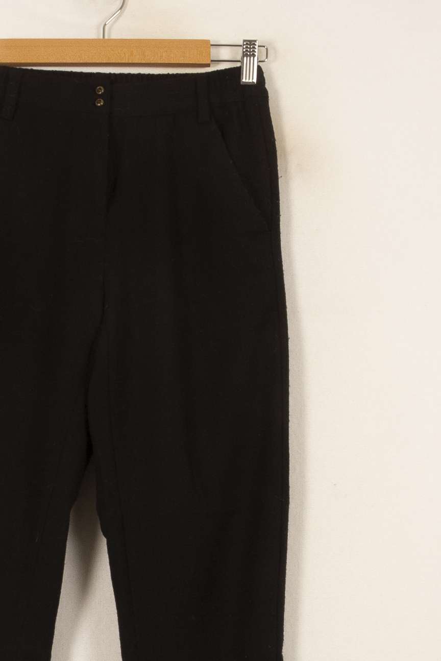 Pantalon noir Sessùn taille S/36, coupe droite classique, parfait pour une silhouette élégante et moderne. Confectionné dans une matière au tombé souple, il se distingue par ses poches latérales et sa fermeture à deux boutons qui apportent une touche raffinée. Idéal pour une journée au bureau ou un rendez-vous professionnel où le confort rime avec style.
