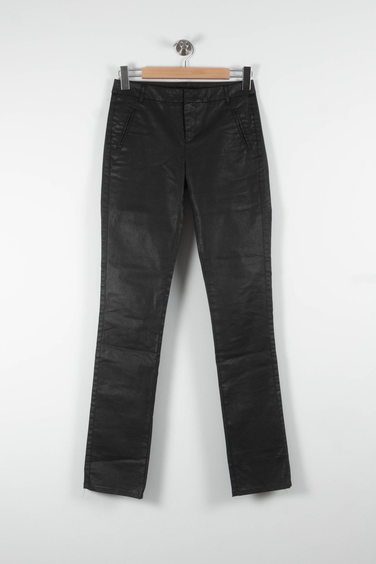 Pantalon noir IKKS taille S/36, coupe droite élégante, idéal pour une allure raffinée. Confectionné dans une matière au fini légèrement satiné, il se distingue par ses poches en biais et ses passants pour ceinture qui ajoutent une touche de sophistication. Parfait pour un look professionnel lors d’un rendez-vous ou d’une journée au bureau.