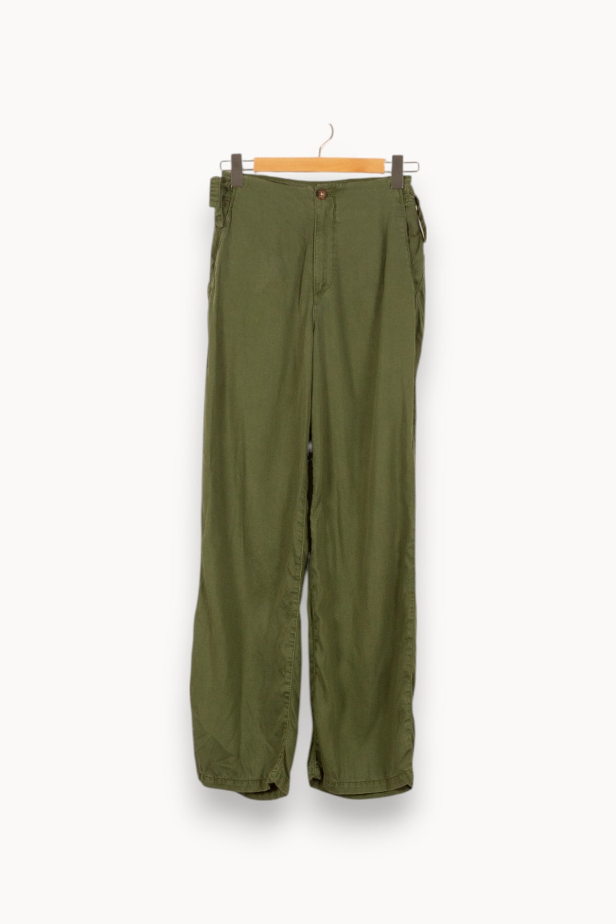 Pantalon vert Labdip taille S/36, au style décontracté et coupe droite, parfait pour une allure casual. Confectionné dans une matière fluide et douce, ce pantalon présente une taille ornée d’un bouton et des passants pour ceinture, offrant une silhouette impeccable et un style singulier. Idéal pour une sortie en ville ou un après-midi détente entre amis.
