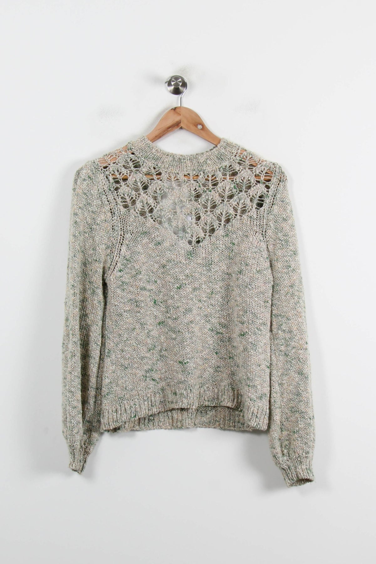 Pull multicolore Sézane en taille XS/34, caractérisé par une coupe droite, des manches longues et une ouverture goutte d’eau élégante à l’avant. Sa maille chinée et douce, ponctuée de discrètes touches de couleur et agrémentée de détails ajourés sur l’épaule, confèrent à ce modèle un style raffiné et unique. Idéal pour une journée au bureau ou un brunch entre amis où l’élégance décontractée est de mise.