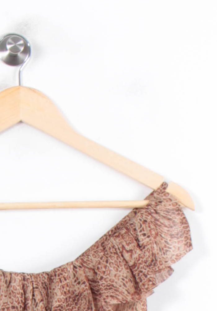 Robe IKKS marron taille L/40, coupe fluide à col bardot volanté, idéale pour une allure féminine et décontractée. Confectionnée dans une matière légère et imprimée, cette pièce se distingue par ses motifs délicats et son volant subtilement drapé sur le haut, apportant originalité et élégance à l’ensemble. Parfaite pour une journée d’été ou une escapade en ville, elle se porte aussi bien lors d’un déjeuner entre amis qu’au cours d’un week-end ensoleillé.