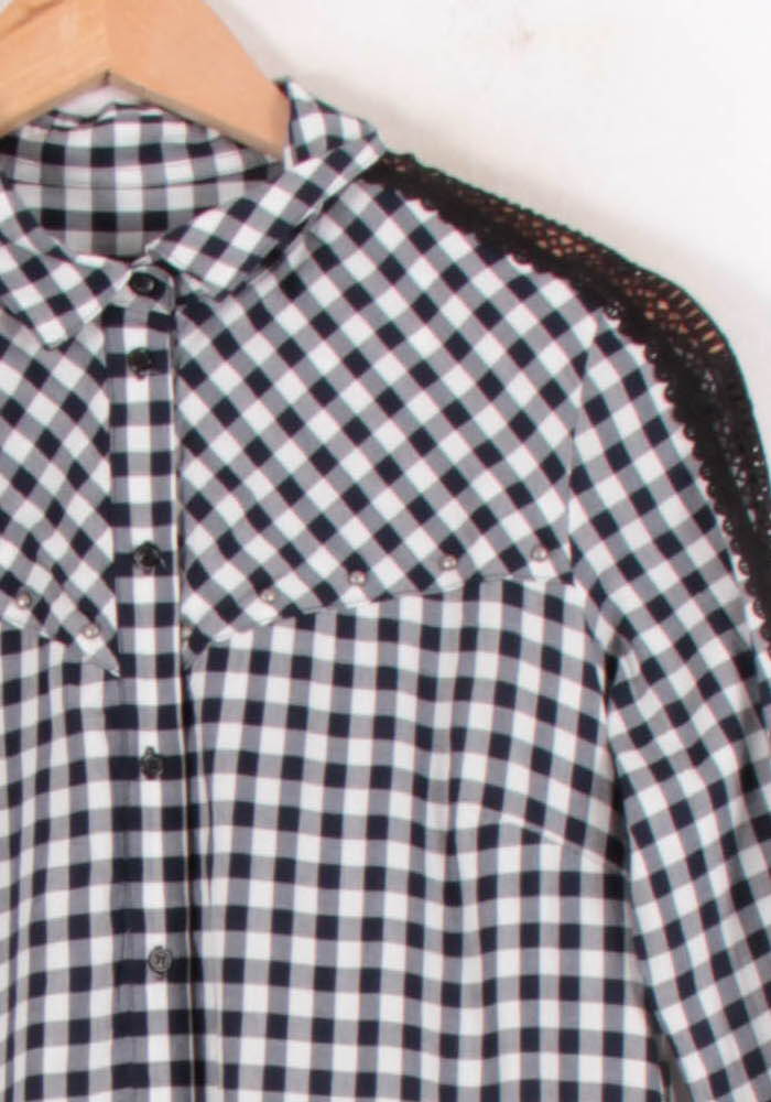 Robe chemise à carreaux multicolore IKKS taille S/36, à manches longues avec fermeture boutonnée sur le devant. La matière légère à motif carreaux est sublimée par des empiècements en dentelle noire sur les épaules, offrant une touche originale et raffinée à l’ensemble. Idéale pour une journée au bureau ou un brunch entre amis, cette robe marie élégance et confort avec subtilité.