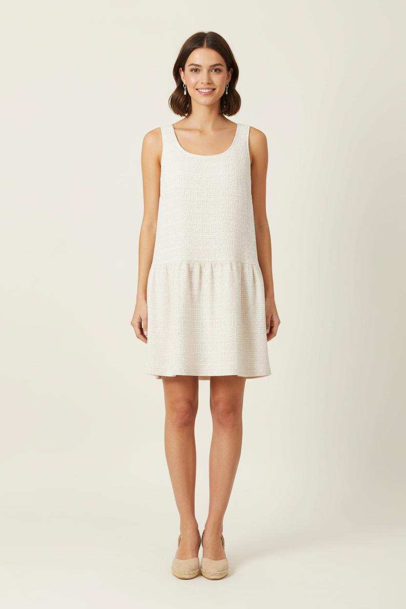 Robe sans manches Sézane beige, taille S/36, à la coupe droite et au style épuré. Confectionnée dans une matière texturée à motif géométrique, elle se distingue par sa finition structurée et son tombé fluide, apportant originalité et élégance à la silhouette. Idéale pour une journée estivale ou un brunch décontracté, elle allie raffinement et simplicité pour toutes les occasions.