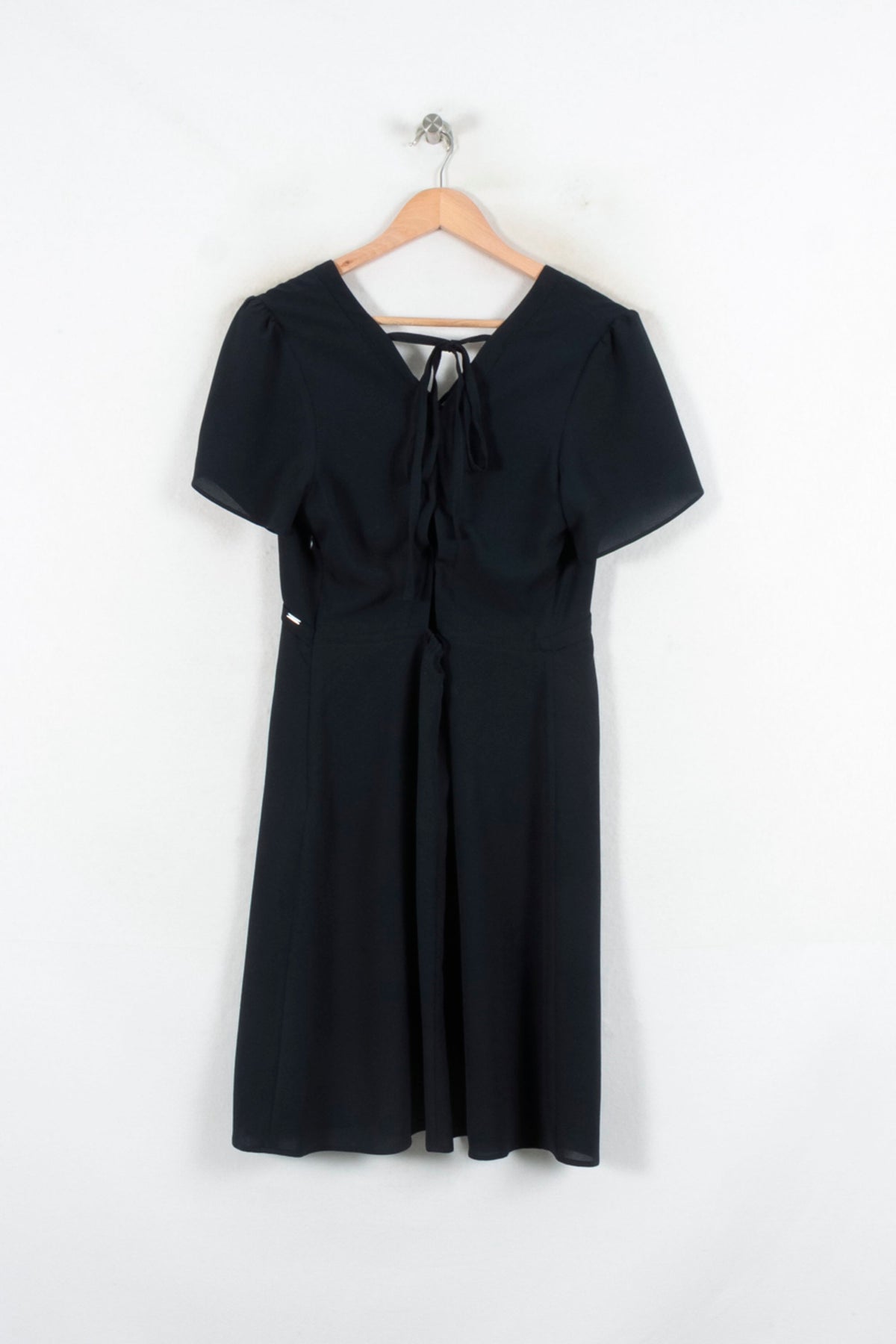 Robe bleu IKKS taille XL/42, à manches courtes et encolure cache-cœur, idéale pour une allure élégante et intemporelle. Confectionnée dans un tissu fluide, elle offre une coupe flatteuse soulignée par une taille empire et un joli détail de nouée dans le dos, alliant simplicité et sophistication. Parfaite pour un dîner chic ou une journée de travail tout en élégance.