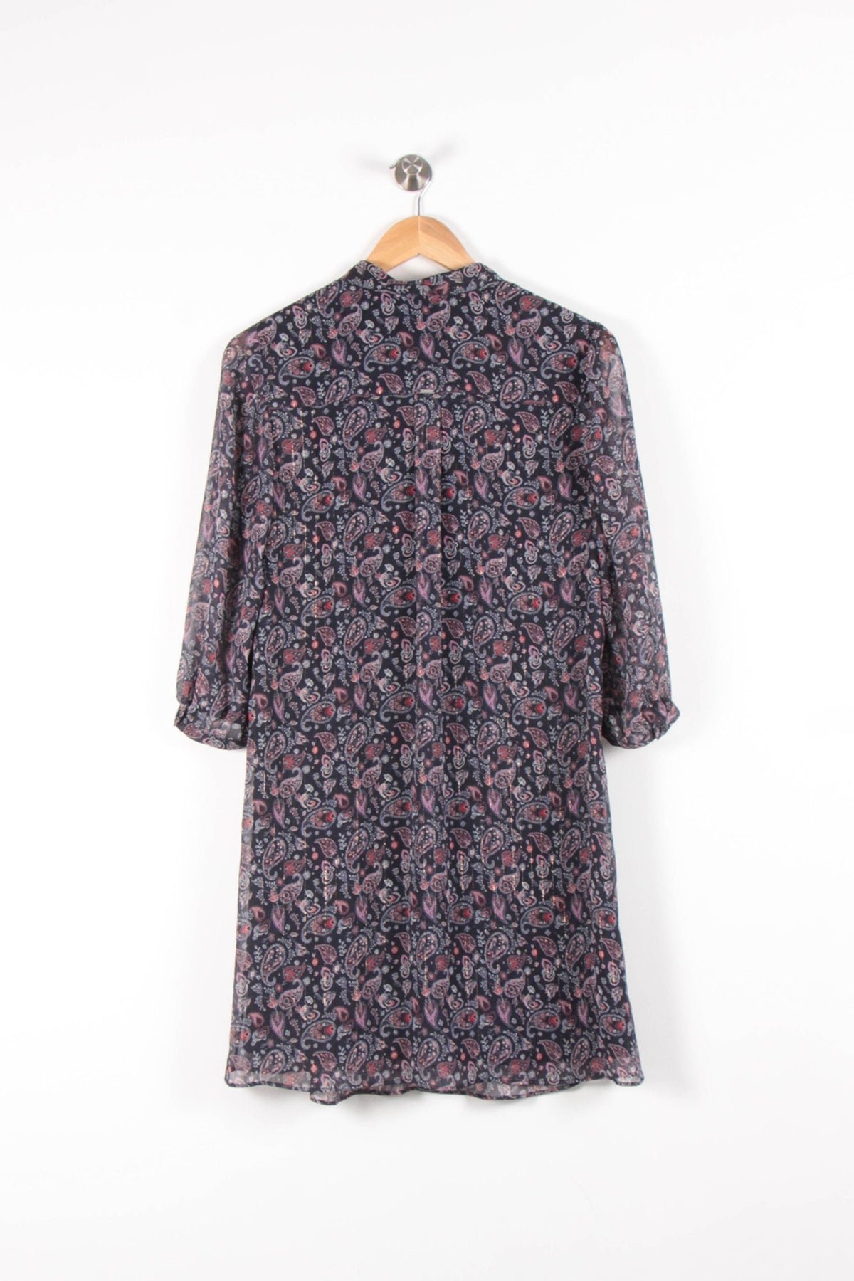 Robe IKKS multicolore taille M/38 à imprimé paisley, affichant une coupe fluide et féminine. Confectionnée dans une matière légère et semi-transparente avec doublure intérieure, cette pièce se distingue par ses manches légèrement bouffantes et son col froncé, soulignant l’élégance de son motif raffiné. Idéale pour une journée au bureau ou une sortie décontractée entre amis, cette robe allie confort et raffinement.