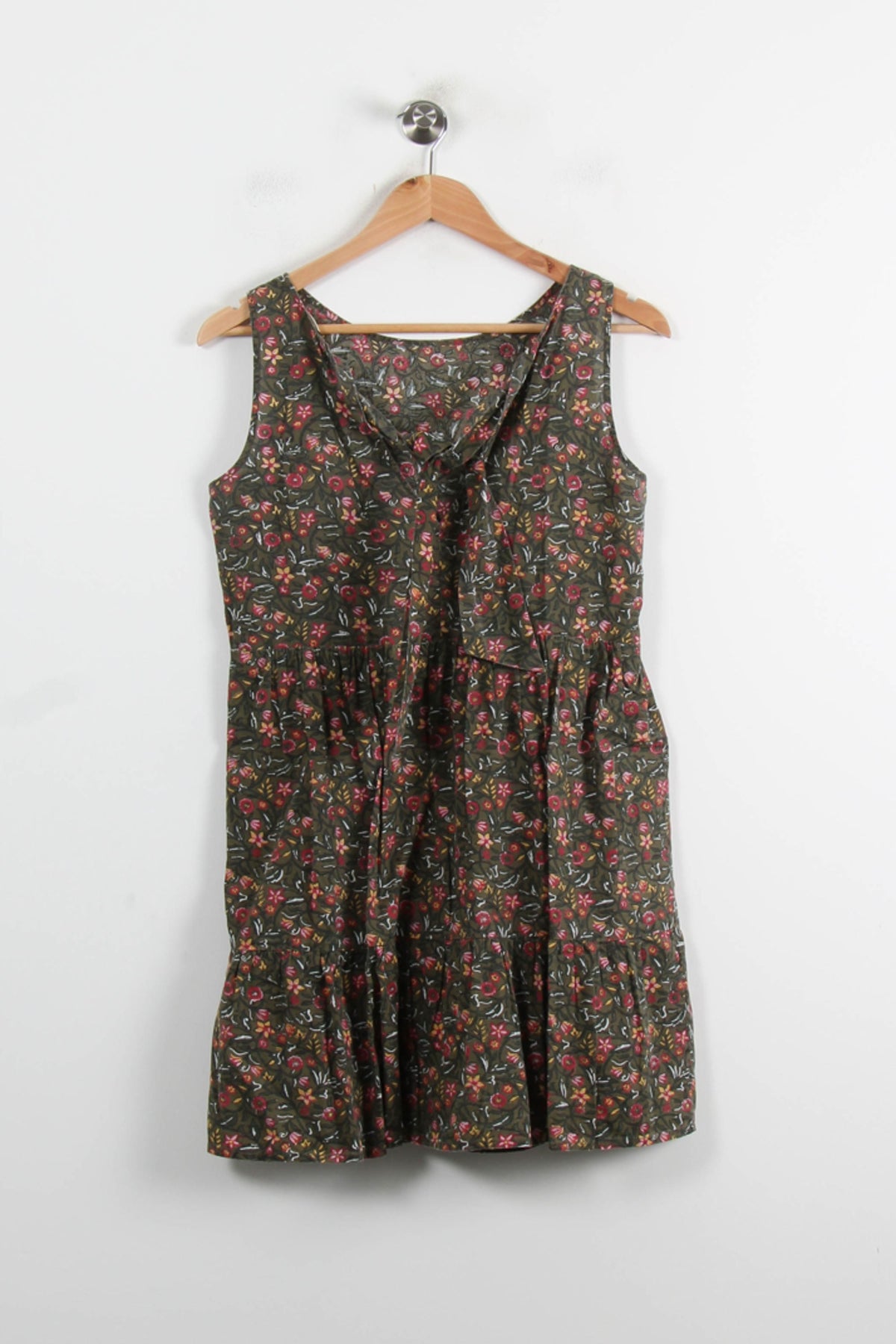 Robe multicolore sans manches Sézane, taille S/36 – une pièce délicatement fleurie idéale pour un style quotidien raffiné. Confectionnée dans une matière légère à motif floral multicolore sur fond vert, cette robe se distingue par ses fronces à la taille et son tombé fluide qui assure confort et féminité. Parfaite pour une promenade estivale en ville ou un après-midi en terrasse.
