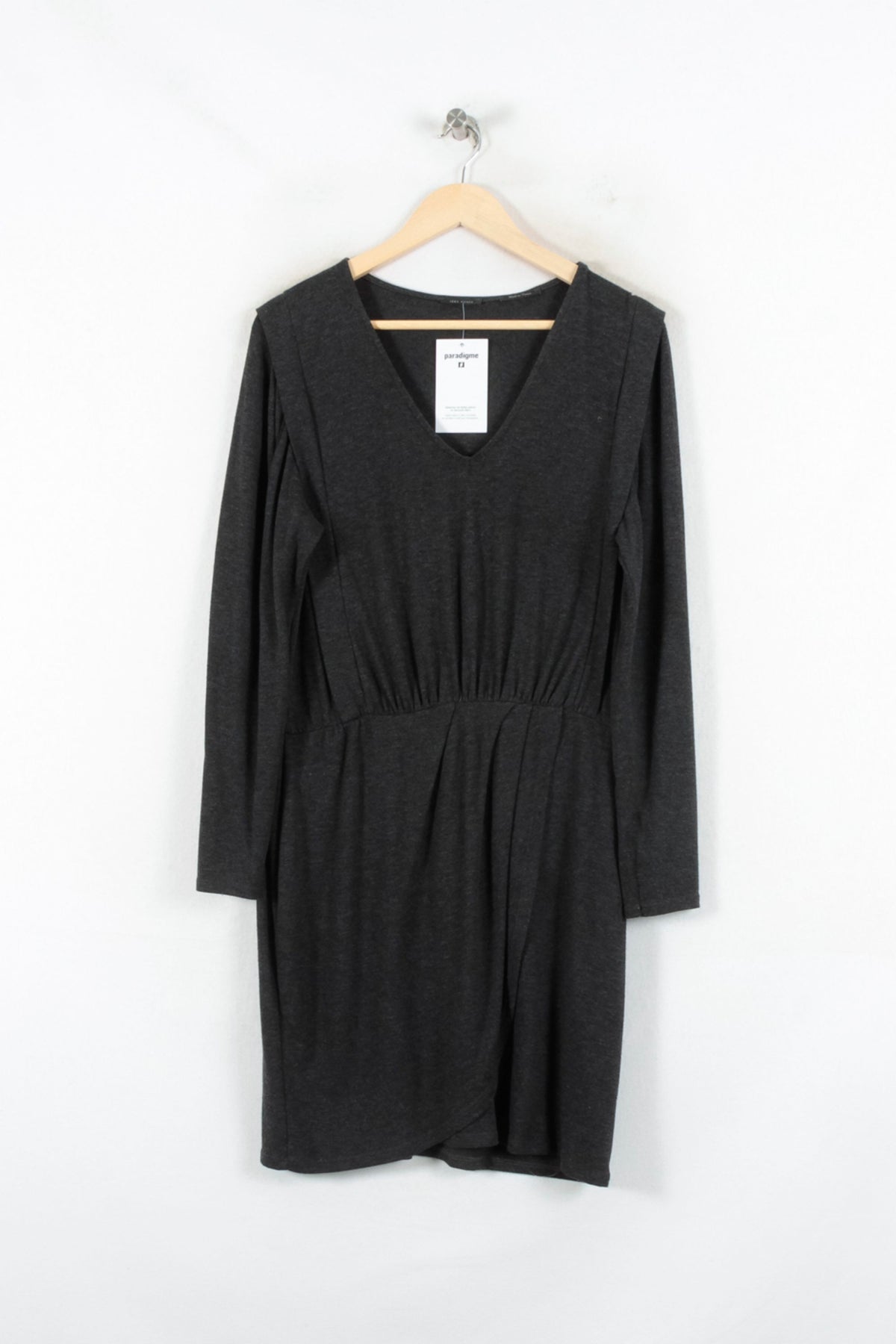 Robe noire IKKS à manches longues, taille L/40, parfaite pour une allure élégante et intemporelle. Confectionnée dans une matière fluide unie, elle présente une coupe flatteuse avec un joli décolleté en V et une taille délicatement froncée qui sublime la silhouette, tout en assurant un confort optimal. Idéale pour un dîner en ville ou une journée professionnelle où raffinement et simplicité sont de mise.