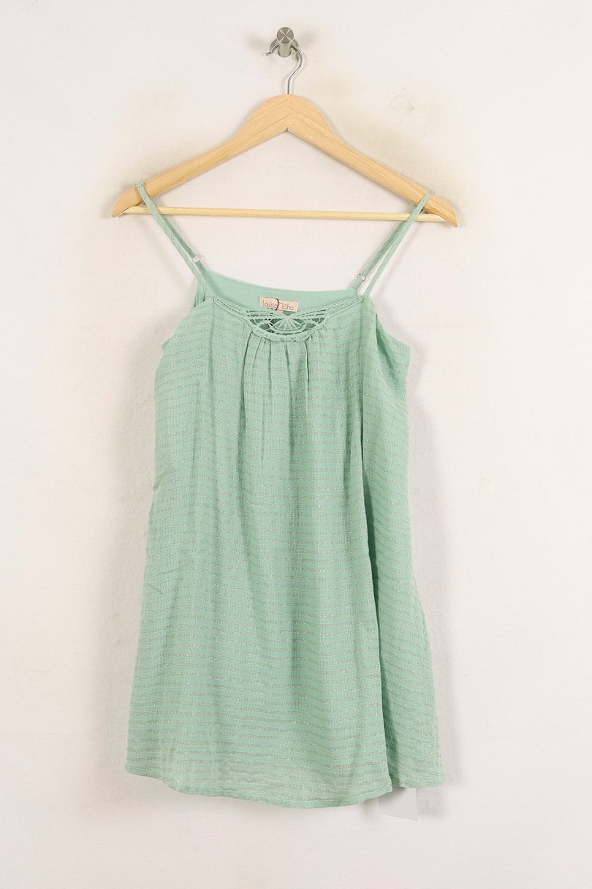 Robe vert pastel Louise Misha, taille S/36, idéale pour une tenue estivale raffinée. Confectionnée dans une matière légère délicatement texturée, elle se distingue par ses fines bretelles réglables et son travail de tressage élégant à l’encolure, apportant une note d’originalité subtile à la silhouette. Parfaite pour une journée en bord de mer ou une promenade lors d’un après-midi ensoleillé.