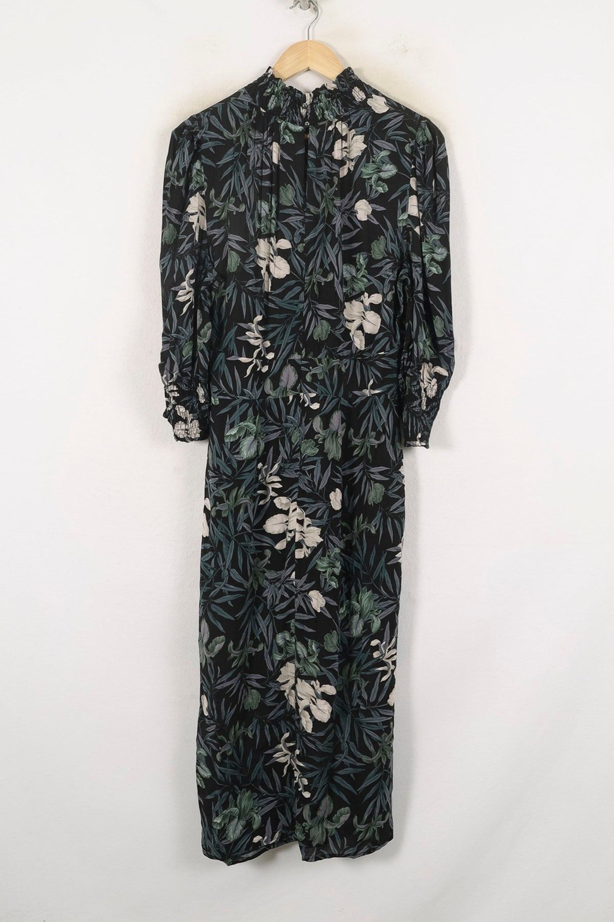 Robe longue multicolore IKKS taille XL/42, idéale pour une allure élégante et décontractée. Confectionnée dans une matière fluide, cette robe se distingue par son imprimé floral sophistiqué aux nuances vertes et beiges, son col montant froncé et ses manches longues à poignets élastiqués, qui lui apportent une touche raffinée et unique. Parfaite pour une journée au bureau suivie d’un dîner en ville ou pour un événement printanier.