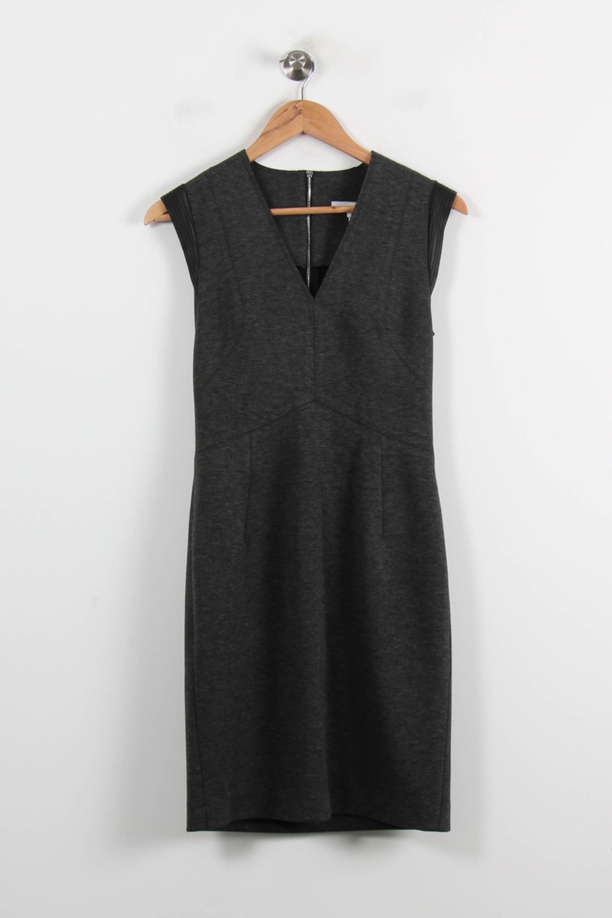 Robe droite grise Sandro, taille S/36, à l’élégante simplicité et à la coupe épurée. Confectionnée dans une matière fluide à l’aspect légèrement chiné, elle présente une encolure en V et des découpes structurantes qui mettent en valeur la silhouette tout en assurant un confort optimal. Idéale pour un rendez-vous professionnel ou une soirée habillée.