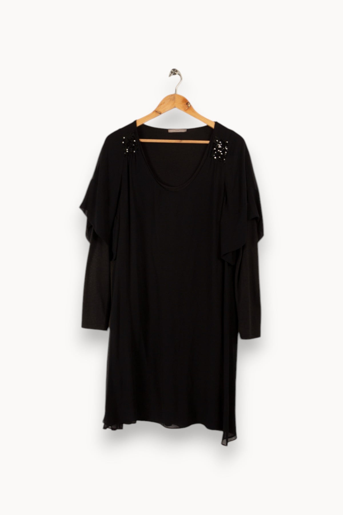 Découvrez l'élégance intemporelle avec cette sublime robe noire de la marque ZAPA, confectionnée dans la plus pure des soies. Sa couleur profonde et son design midi vous confèrent une allure sophistiquée, parfaite pour toute occasion. La coupe raffinée de cette pièce met en valeur la silhouette, tout en offrant un confort inégalé. Que vous assistiez à un événement formel ou à une soirée entre amis, cette robe noire est le choix idéal pour une femme moderne qui cherche à allier style et qualité. Faites un geste pour la planète en optant pour cette pièce de mode responsable de seconde main.