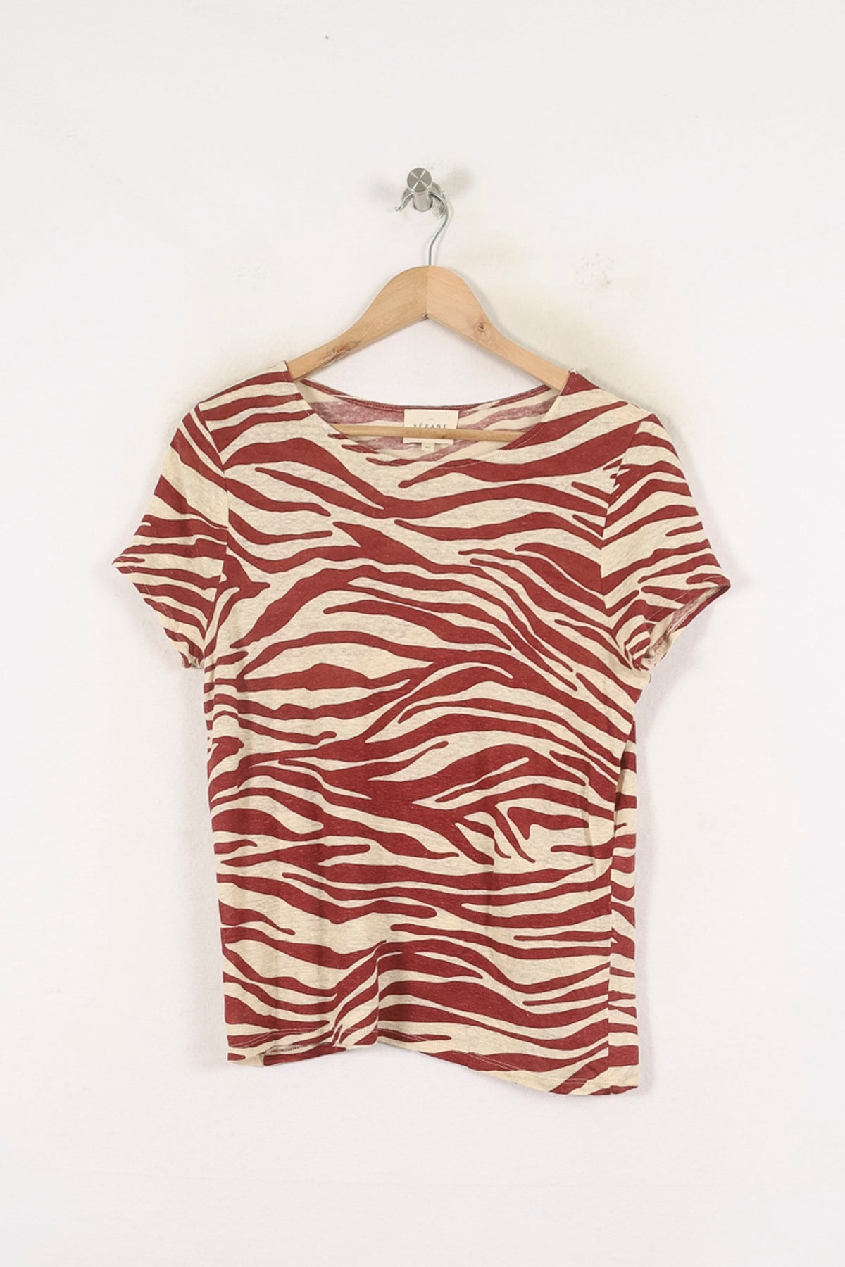 Top imprimé zébré Sézane multicolore en taille XS/34, une pièce tendance signée par la marque incontournable Sézane. Ce haut se distingue par sa matière légère et confortable, ornée d’un imprimé zébré rouge et beige qui confère une touche d’originalité et de modernité à la silhouette. Parfait pour une sortie décontractée ou pour dynamiser une tenue de bureau sobre avec une pointe de caractère.