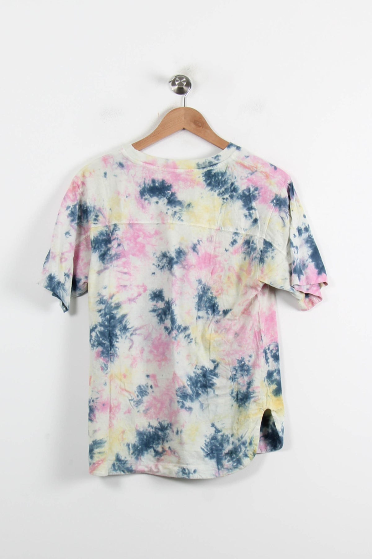 T-shirt "L'AMOUR C'EST ÇA" multicolore Zadig&Voltaire, taille S/36. Confectionné dans une matière fluide, ce t-shirt se distingue par son motif tie and dye aux teintes vives et son inscription audacieuse sur le devant, offrant une allure moderne et artistique. Idéal pour une sortie décontractée entre amis ou pour rehausser un look urbain avec une touche d’originalité.