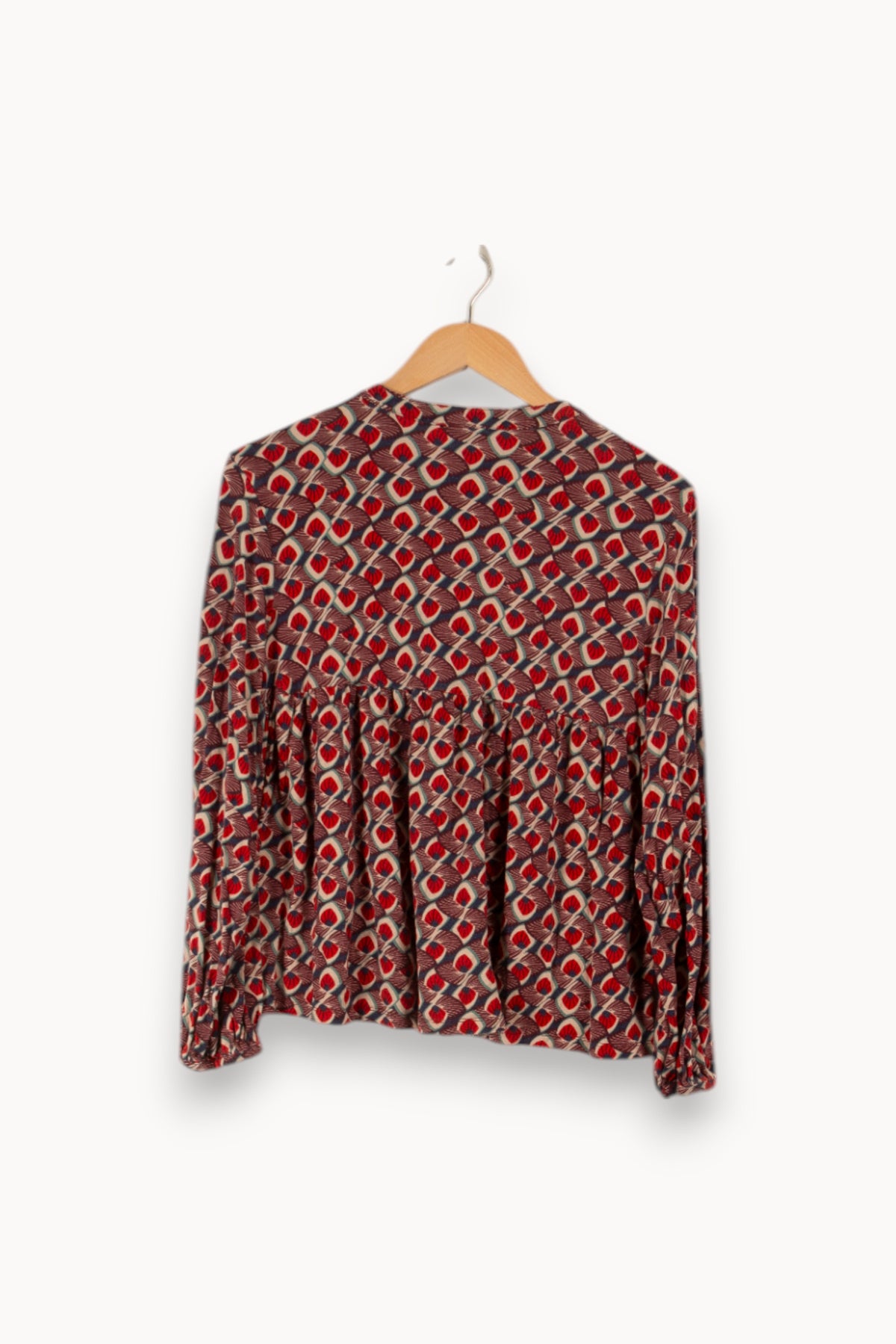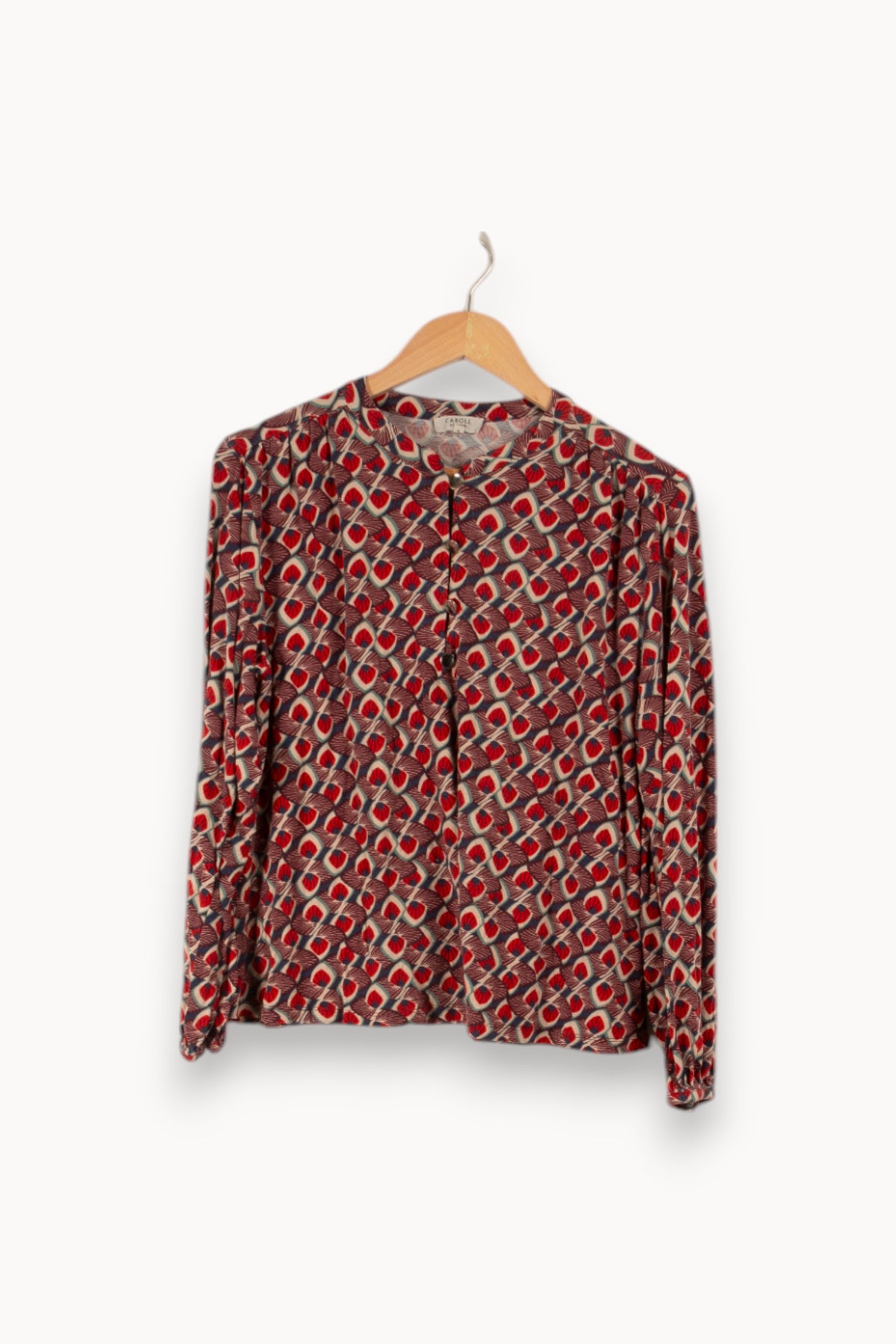 Découvrez le charme intemporel de ce top à manches longues signé Caroll, une pièce maîtresse pour toute garde-robe qui se respecte. Confectionné dans une matière douce et fluide en viscose, ce haut arbore des motifs délicats sur un fond rouge passion, ajoutant une touche de couleur et de dynamisme à vos tenues. Idéal pour une allure sophistiquée ou décontractée, il s'adapte à toutes vos envies. La marque Caroll, reconnue pour son élégance et sa qualité, vous assure un vêtement durable et tendance. Faites un choix mode et éthique en optant pour ce top de seconde main, alliant style et responsabilité environnementale.