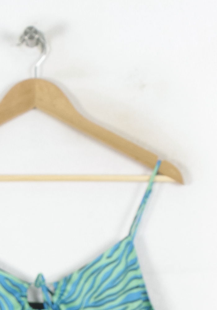 Top multicolore à bretelles fines IKKS, taille XL/42, offrant une silhouette élégante et moderne. Sa matière légère rehaussée d’un motif graphique ondulé bleu et vert apporte une touche d’originalité, tandis que le détail d’ouverture discrète au col rend ce top unique et raffiné. Idéal pour une sortie estivale ou un déjeuner en terrasse, il assure confort et style en toute occasion.