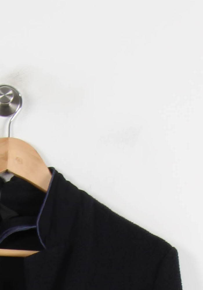 Veste bleu marine IKKS en taille XL/42, au style élégant et intemporel, idéale pour sublimer votre silhouette. Confectionnée dans une matière fluide au toucher doux, elle se distingue par ses détails raffinés : col légèrement officier, boutons métalliques argentés et finitions passepoilées sur les poches qui lui confèrent une allure sophistiquée et unique. Parfaite pour une réunion professionnelle ou une sortie chic en soirée, cette veste saura accompagner vos looks les plus élégants.