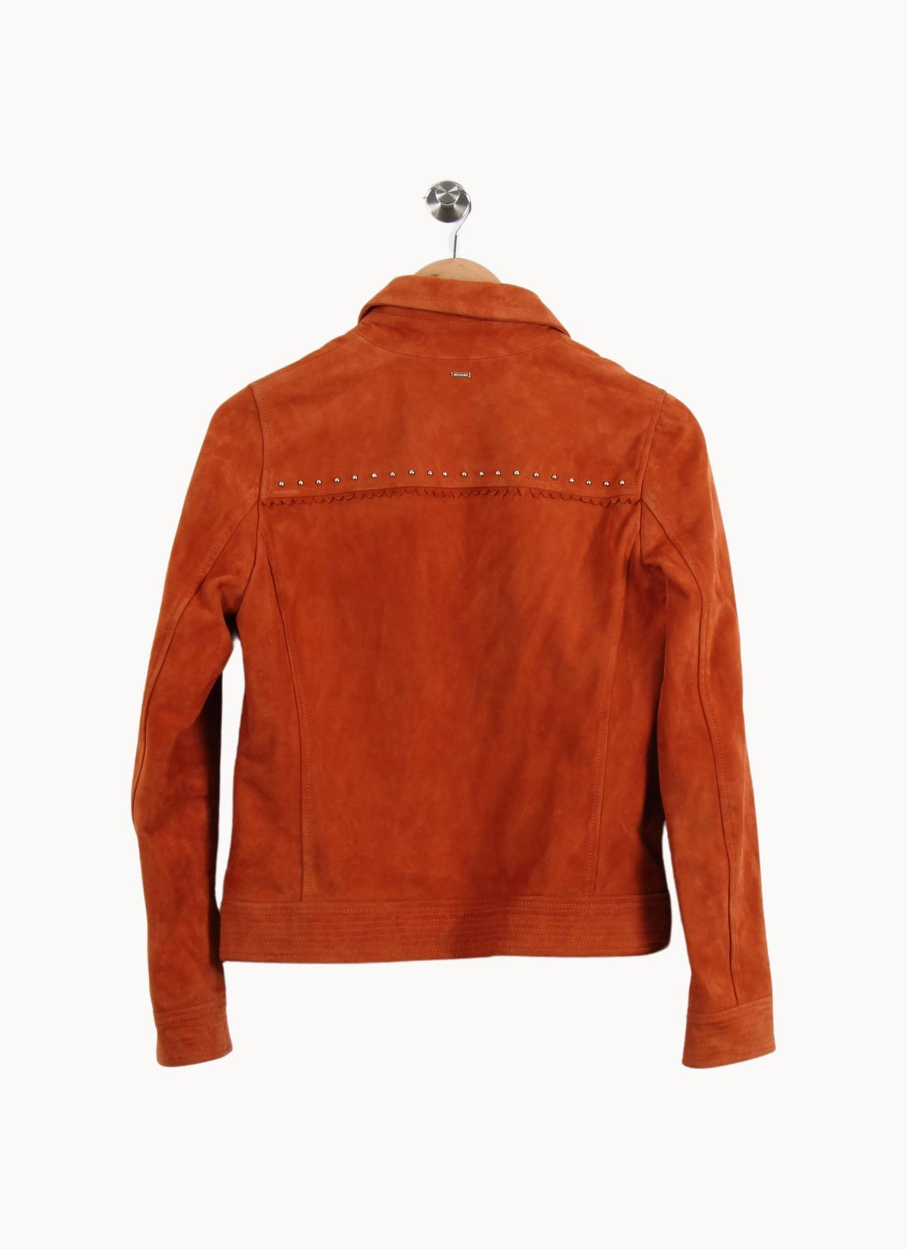 Veste IKKS orange taille M/38, coupe droite et fermeture zippée, idéale pour une allure dynamique et élégante. Confectionnée dans une matière effet daim, elle est agrémentée de détails de petits studs argentés au niveau du buste, qui apportent une touche de raffinement et d’originalité à ce modèle. Parfaite pour sublimer une tenue de demi-saison lors d’un déjeuner entre amis ou d’une sortie en ville.