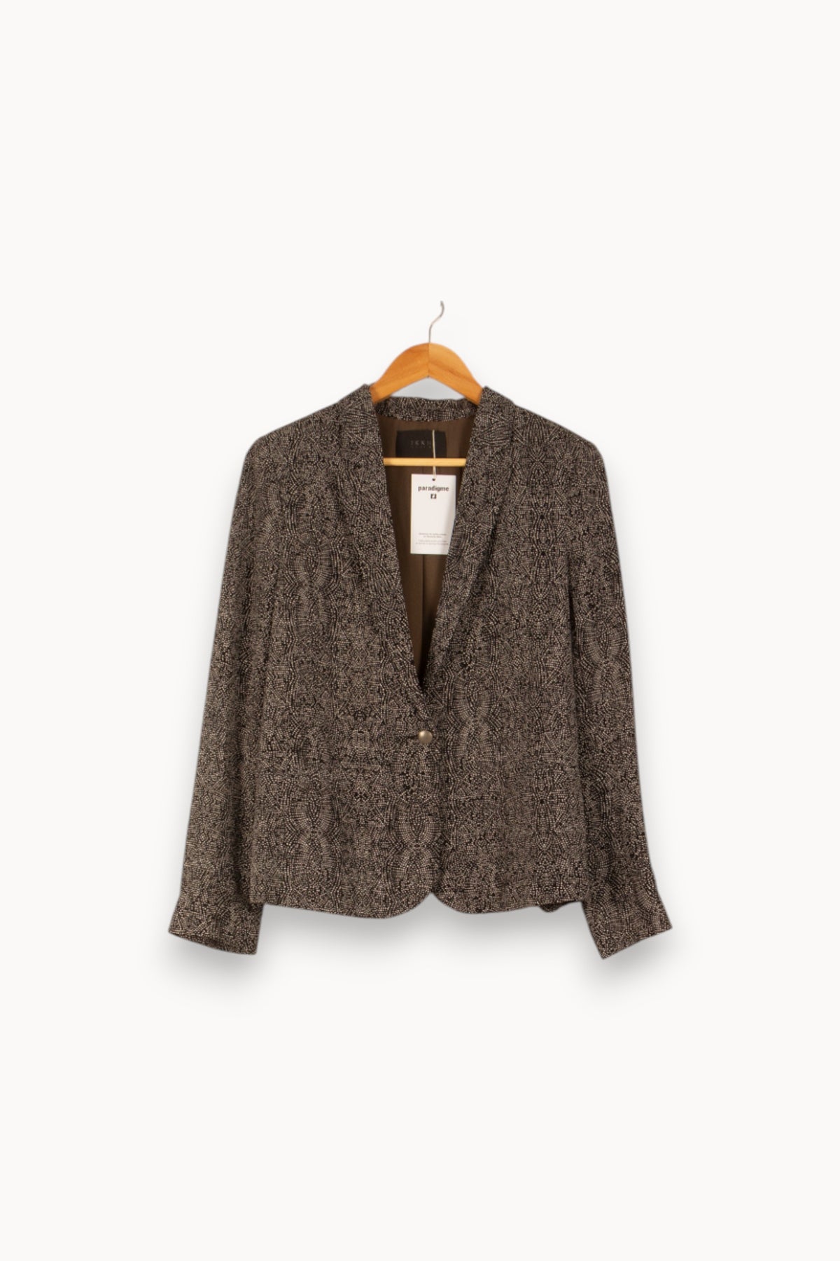 Veste noire IKKS taille L/40, élégante et moderne, idéale pour compléter une tenue habillée ou professionnelle. Sa matière présente un motif raffiné et un tombé fluide, magnifié par une fermeture à bouton unique qui apporte une touche distinctive à l’ensemble. Parfaite pour un rendez-vous d'affaires ou une soirée élégante, cette veste s’inscrit dans un vestiaire chic et contemporain.